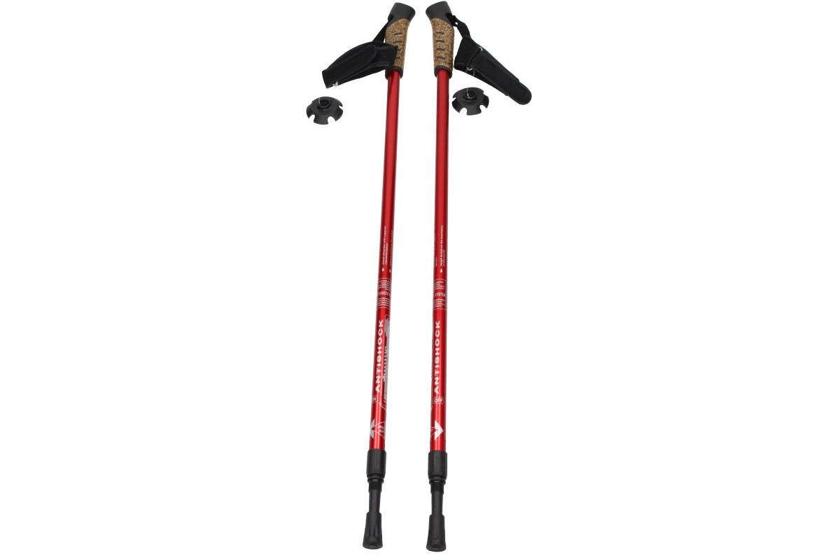Teleskopické trekkingové hole jsou dvojdílné a jsou dodávány s výměnnými nástavci. Jsou vyrobeny z kvalitní slitiny z hliníku s vnitřním tlumení systému (anti-shock), výrazně zvyšuje bezpečnost kloubů, mají velmi komfortní rukojeť vyrobenou ze speciálního materiálu, uzavírání ruky zajištůjí popruhy na suchý zip.