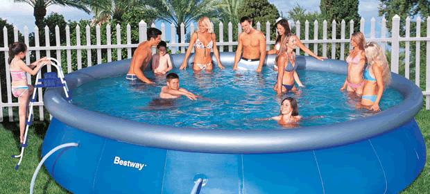 Samonosné kruhové rodinné bazény z pevného trojvrstvého vinylu patří díky své cenové dostupnosti a díky jednoduché a rychlé montáži mezi nejprodávanější na trhu. Stačí nafouknout horní prstenec, napustit vodou a stoupající sloup vody bazén sám postaví. Pružná konstrukce rodinného bazénu je odolná proti mechanickému poškození a zároveň vhodná a bezpečná pro děti