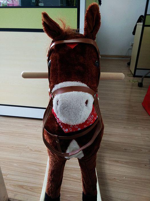 Houpací koník je vyroben z kvalitního plyše, má pohodlné sedlo a dřevěná madla.
