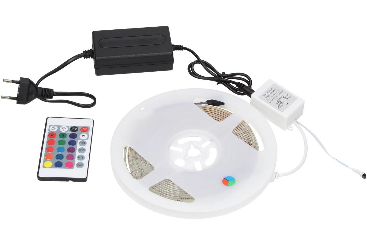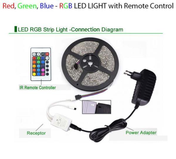LED pásek je odolný proti vodě stříkajicí ze všech směrů. Na jednom metru pásku je 60 SMD LED a mohou se stříhat pouze na vyznačených místech, každých 15cm. Široce používané pro domácí použití dekorace pro hotely, kluby, nákupní centra Architektonické dekorativní osvětlení, butiková atmosféra osvětlení . Led pásek Vám umožňuje měnit barvy díky dálkovému ovladači s 24 volitelnými funkcemi osvětleni včetně zapnutí a vypnutí řetězu. Hlavní barvy jsou modrá, červená a zelená. Možno svítit i všemi barvami na jednou. Zvolená barva je pak stejná po celé délce pásku.
