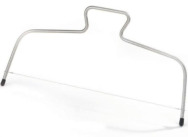 Krájecí struna na dort Vám pomůže přesně a navíc velmi snadno prokrojit upečený dortový korpus. Můžete si ji nastavit do 10 různých výšek. Materiál: nerezová ocel.