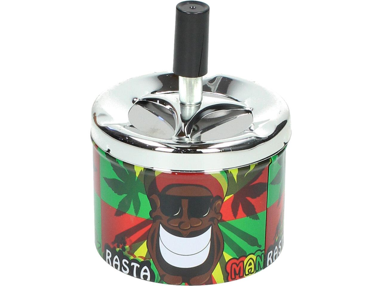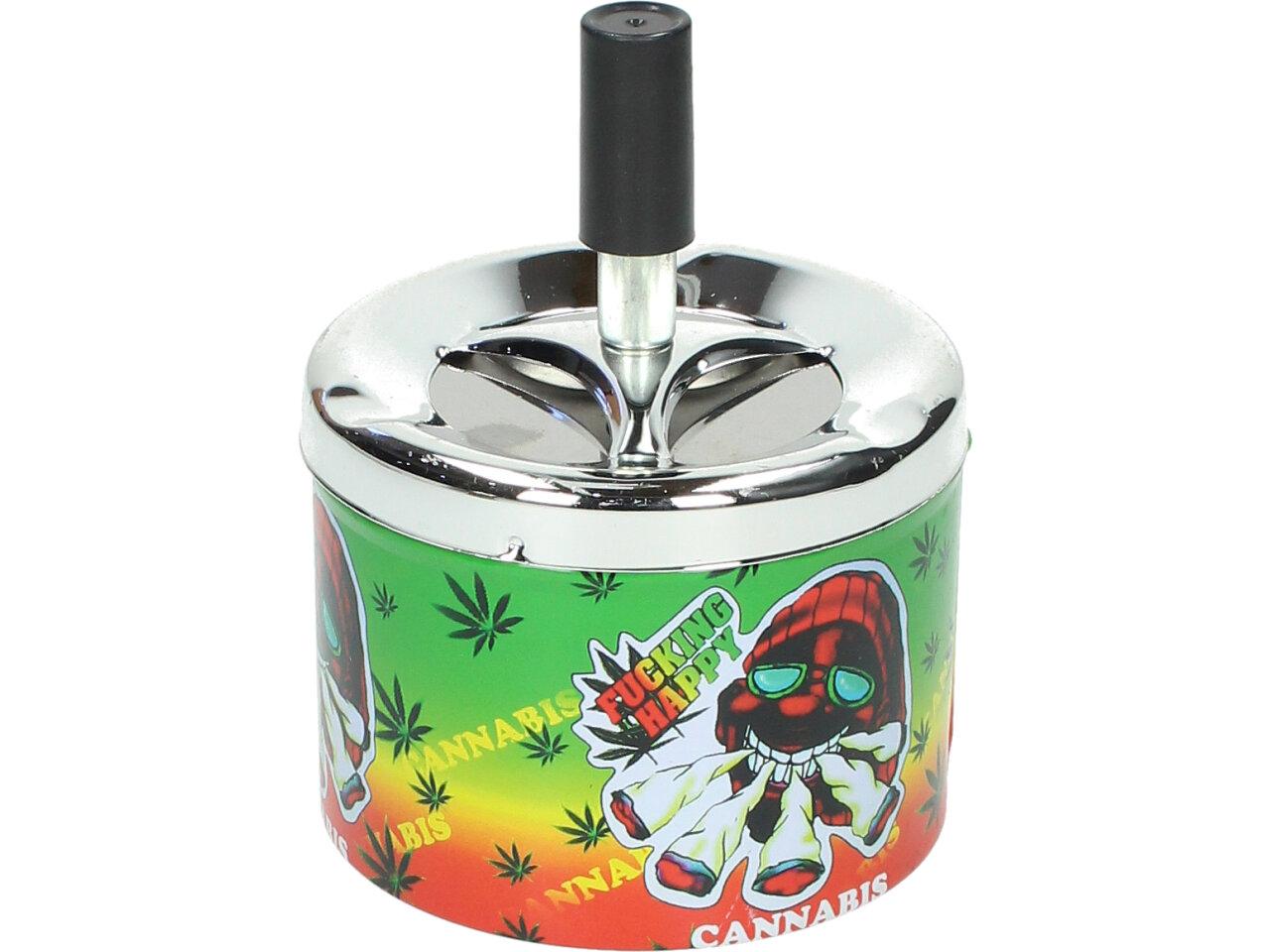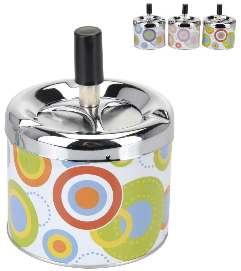 Krásný designový doplňek na stůl, pro kuřáky, nebo kuřácké návštěvy. Kovový popelník s veselým barevným motivem funguje na principu pístu. Po stlačení černé tyčky se popelník otevře a veškerý popel a nedopalky z cigaret se propadnou dovnitř do zásobníku. Po té co tyčku pustíte, popelník se sám zavře a utemní tak odpad z cigaret ve svých útrobách. Nic tak nikde nepadá, vítr nic nerozfouká a není nic cítit.
