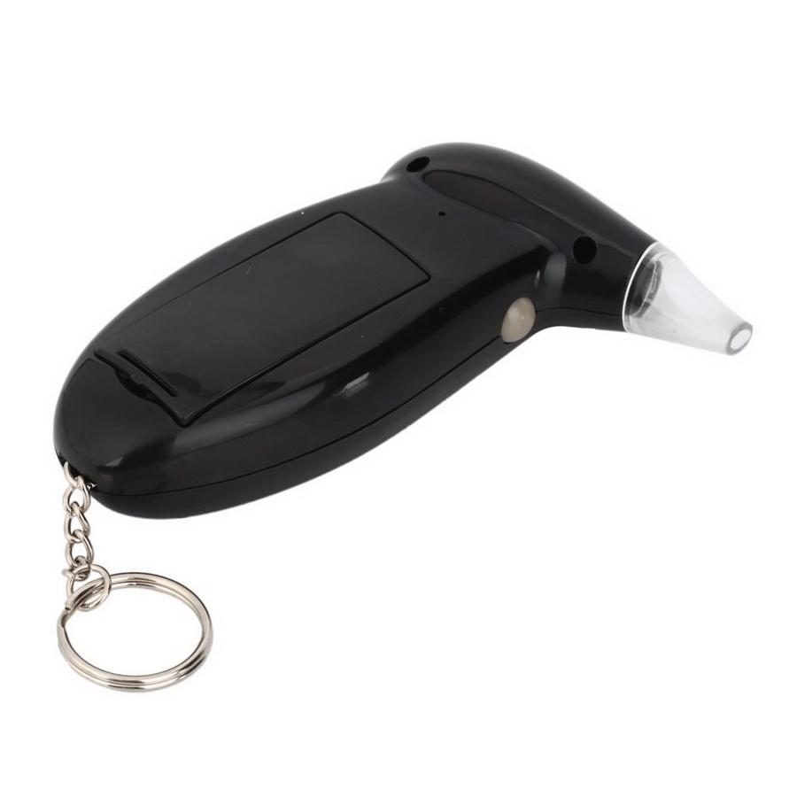 Výkonný a přesný alkohol tester pro domácí použití s kroužkem a řetízkem pro možnost připevnění na klíčenku nebo klíče.