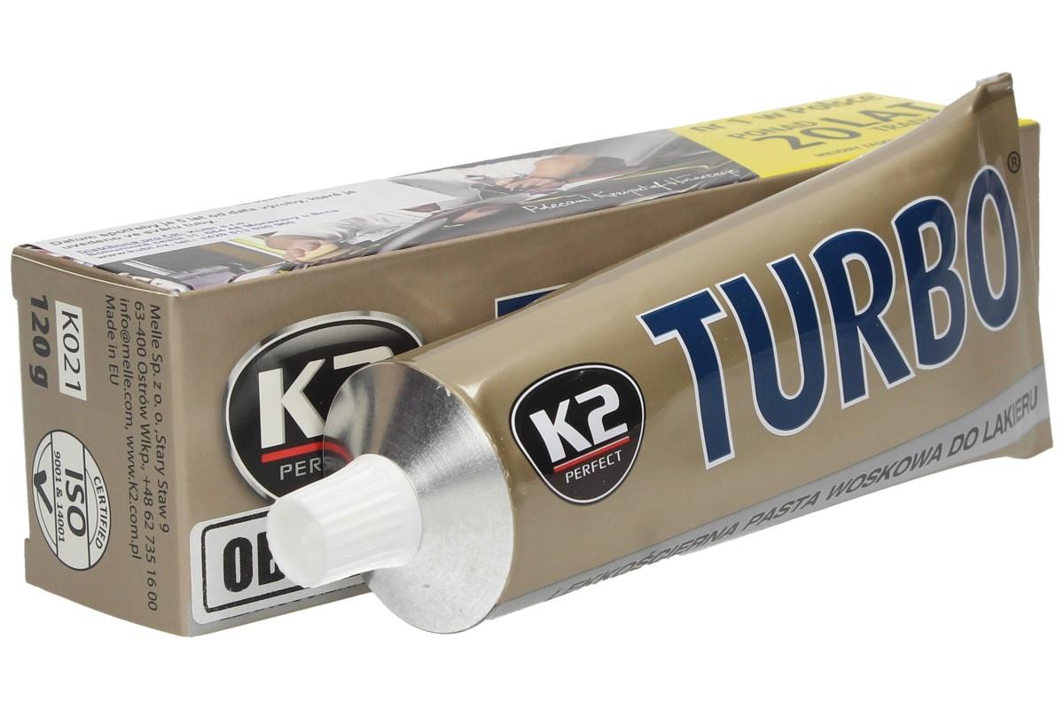 Tuhle pastu na karoserii testoval sám život a milion zákazníků! Receptura 120 gramového balení K2 TURBO se speciálními nanočásticemi odstraňuje i ty nejmenší škrábance a lak se poté ještě více leskne viz. obrázek. Hodí se pro všechny typy nátěrů, včetně kovových. Snadno si poradí se skvrnami od oleje, asfaltu a zbytků hmyzu a vše odstraní. Prvně je třeba auto umýt, vysušit karoserii a pak kruhovými pohyby nanést tentkou vrstvu pasty, měkkým hadříkem nebou houbou. Po 30 sekundách když pasta zaschne, stačí utřít karoserii čistým hadříkem nebo utěrkou z mikrovlákna (viz. naše nabídka), aby lak získal patřičný lesk, a vaše auto bude zase vypadat jako nové.