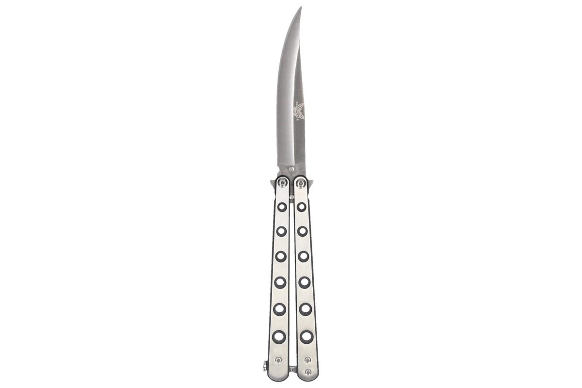 Elegantní rychle se rozkládací nůž (tzv. balisong) s kovovou rukojetí