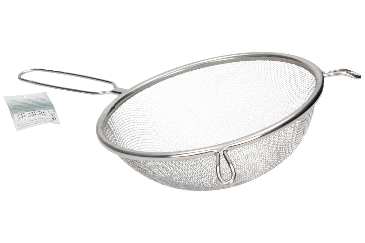 Cedník jemný s rukojetí a dvěma očky dobře drží na hrnci. Materiál: kvalitní nerez! Takže lze mýt cedník v myčce na nádobí!