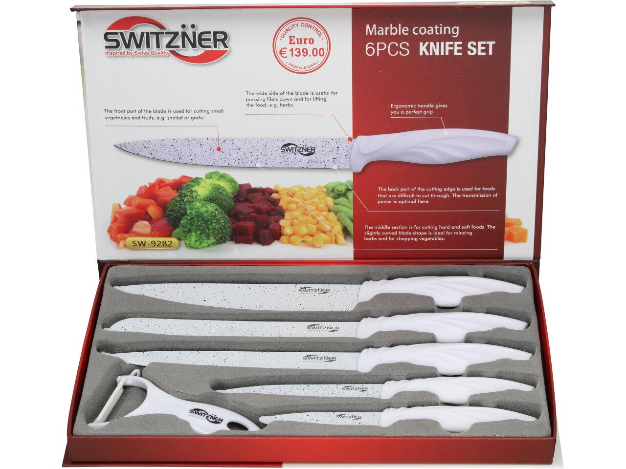 Sada 6ti nožů SWITZNER SW-005W je uložena v krásném dárkovém boxu včetně škrabky na brambory, zeleninu apod., kterou od nás dostanete ZDARMA!