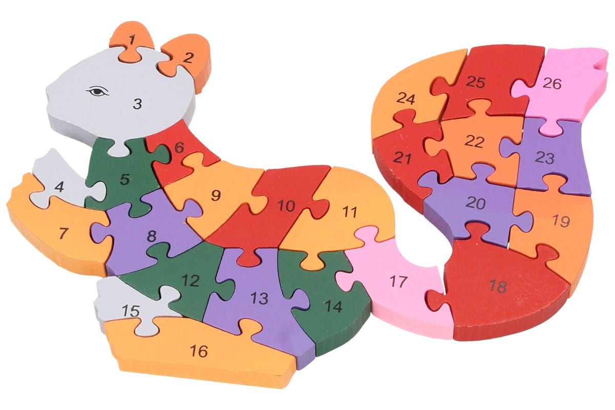 Jednotlivé části se vkládají na své místo v obrázku - jednotlivé díly do sebe krásně a jednoduše zapadají a jsou očíslované. Vkládací puzzle je vyrobené z 1,5 cm širokého masivného dřeva a je opatřené nátěrem pro děti bezpečných barev.