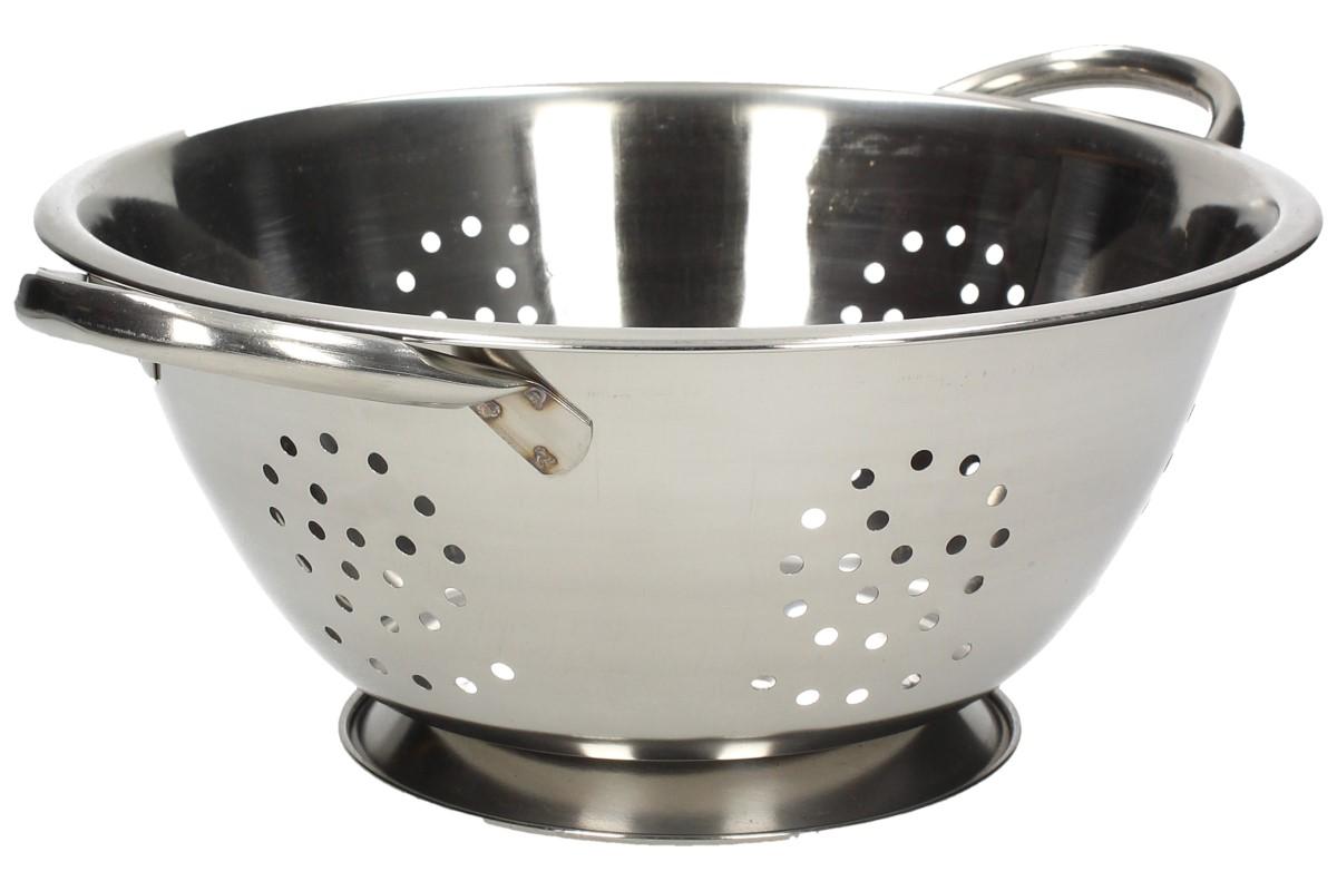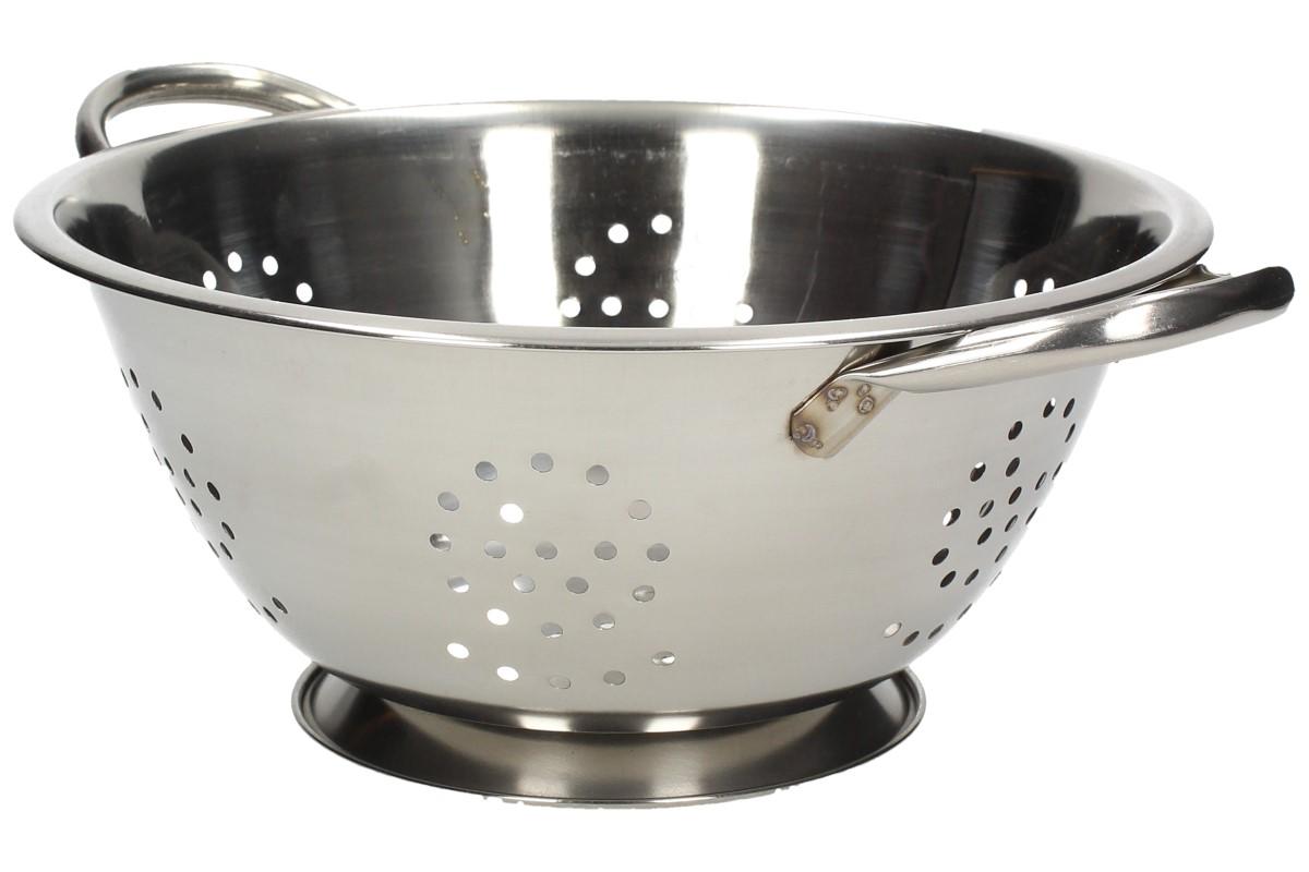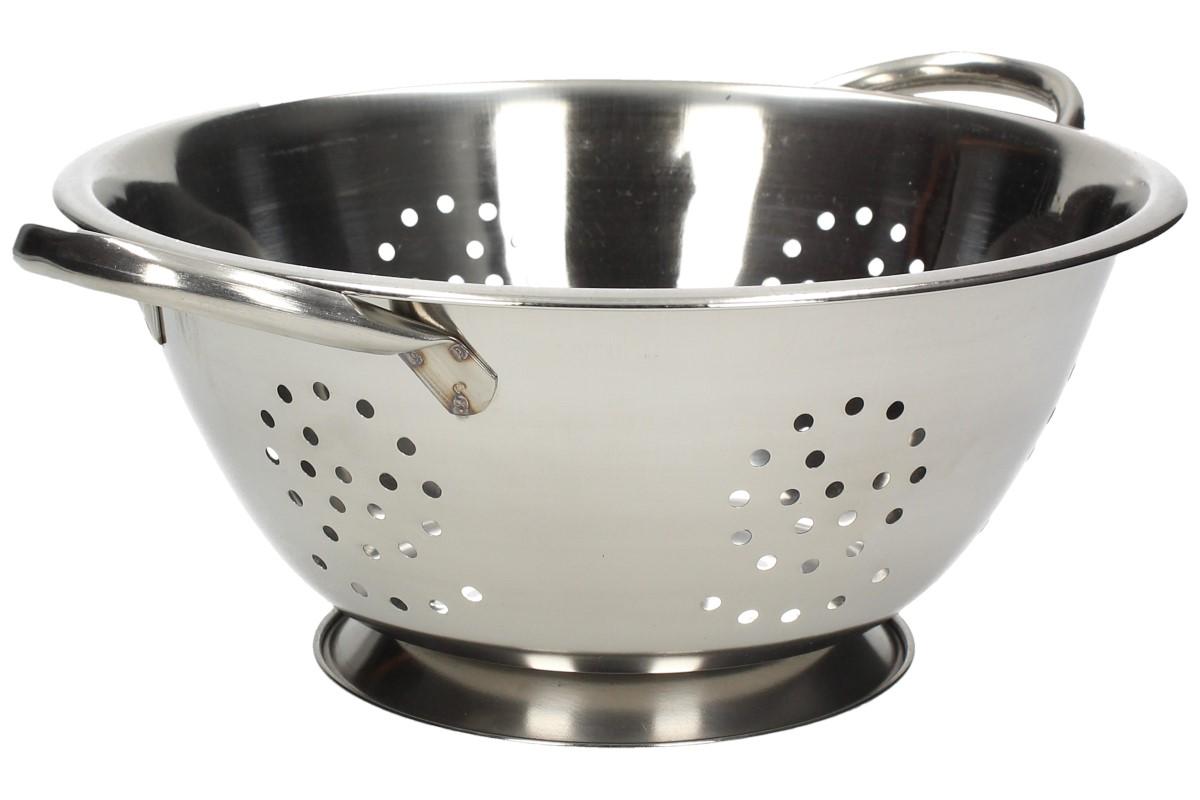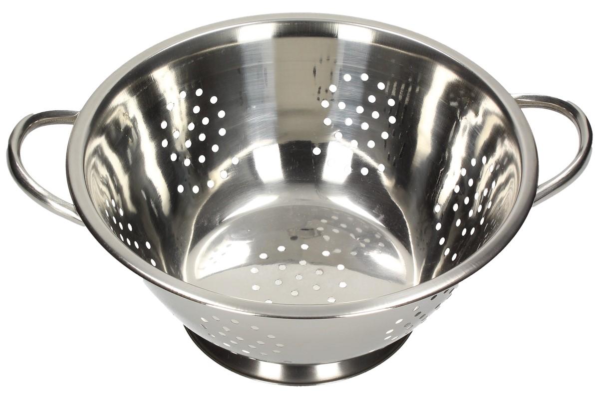Nerezový cedník s oušky a dnem s možností postavit cedník na rovnou plochu. Hodí se pro např. vaření těstovin, brambor atd.