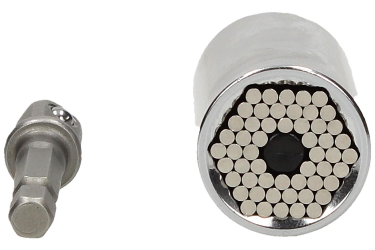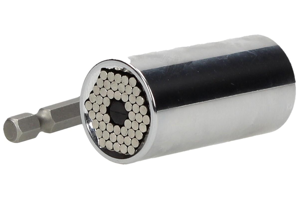 Univerzální hlavice je vhodná na montáž šroubů s šestihrannou hlavou o velikosti 7 až 19 mm. Univerzální hlavice umí dotáhnout nebo povolit i šrouby s čtvercovou hlavou, osmihrannou hlavou, křídlové matice, oka a háky na šroubu atd. Neocenitelná je taky možnost povolit šrouby, ventily a další zařízení s poškozeným povrchem, které nelze již povolit standardními klíči. Nástrčnou hlavici lze nasadit na ráčnu 1/2 palce nebo přes redukci na aku šroubovák.
