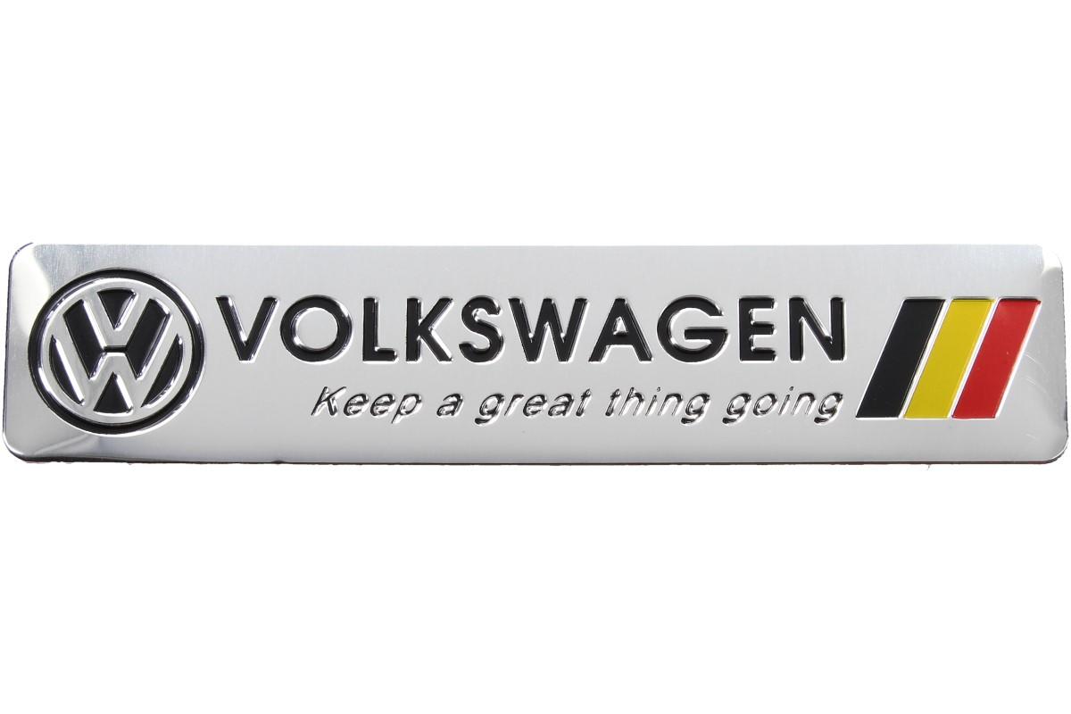 Kvalitní kovová samolepka volkswagen o rozměrech 12cm x 2,5cm