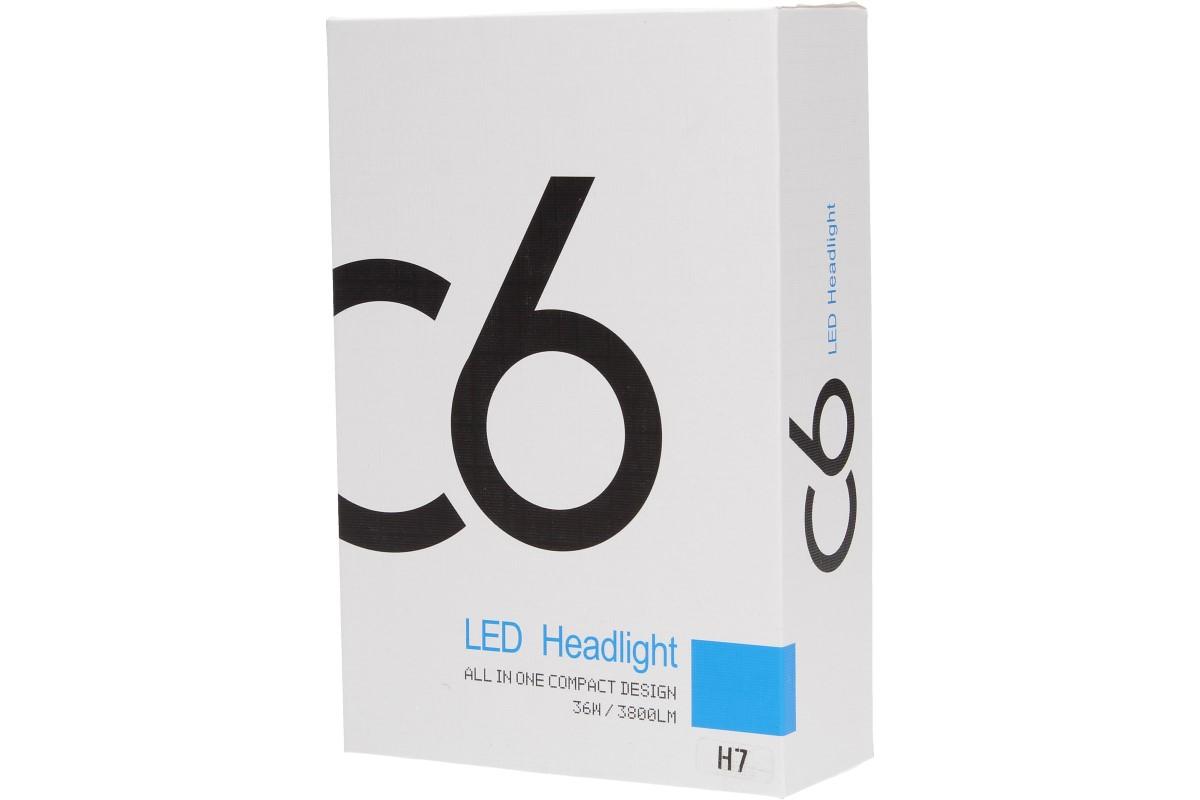 Velice odolná LED H7 C6 žárovka s barvou světla 6000K (studená bílá) sada 2 kusy do světlometu do auta na 12V, 24V jako náhrada za klasickou nevýkonou žárovku H7.