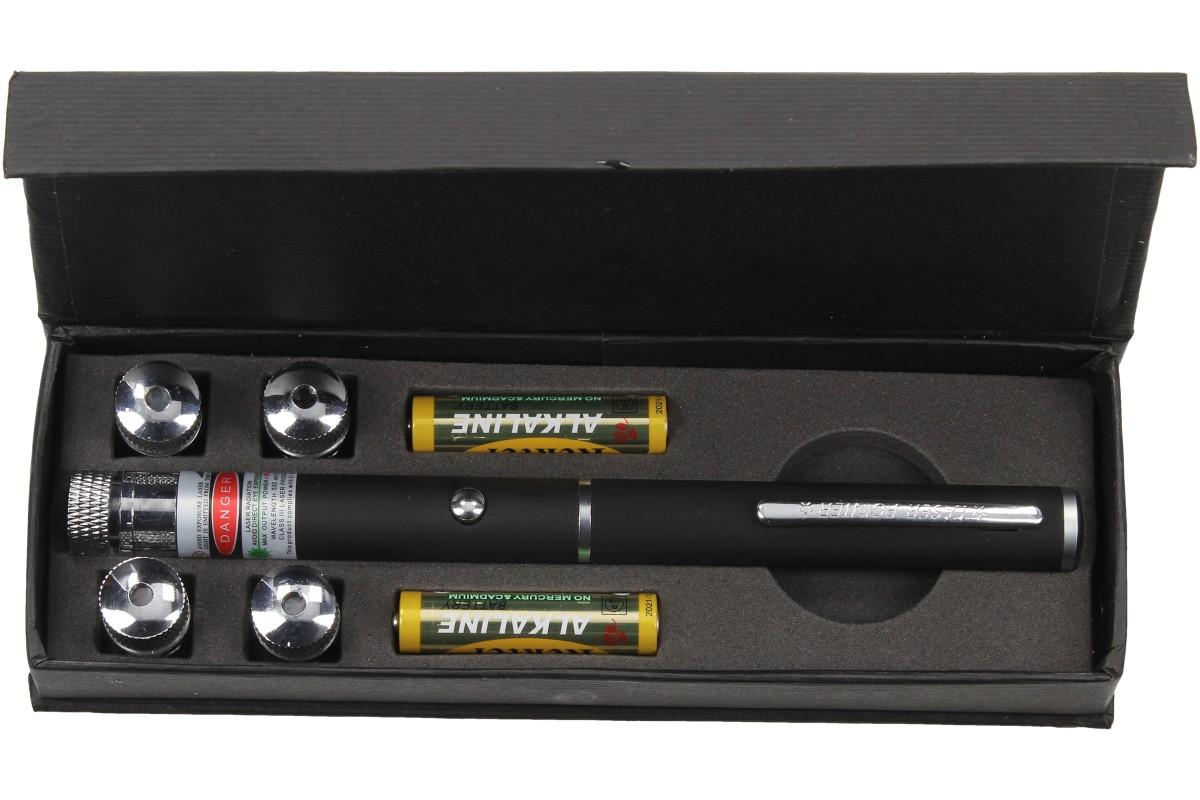Vysoce kvalitní laserové ukazovátko vyrobené z kovu s pogumovaným tělěm a pěti výměnnými nástavci v sobě spojuje nejnovější technologie zelené laserové optiky a mikroelektroniky. Zaměřte laser na jakýkoliv požadovaný objekt, jako např. projekční plátna, video monitory. Ideální pro použití při prezentacích, v muzeu a při prohlídce památek.