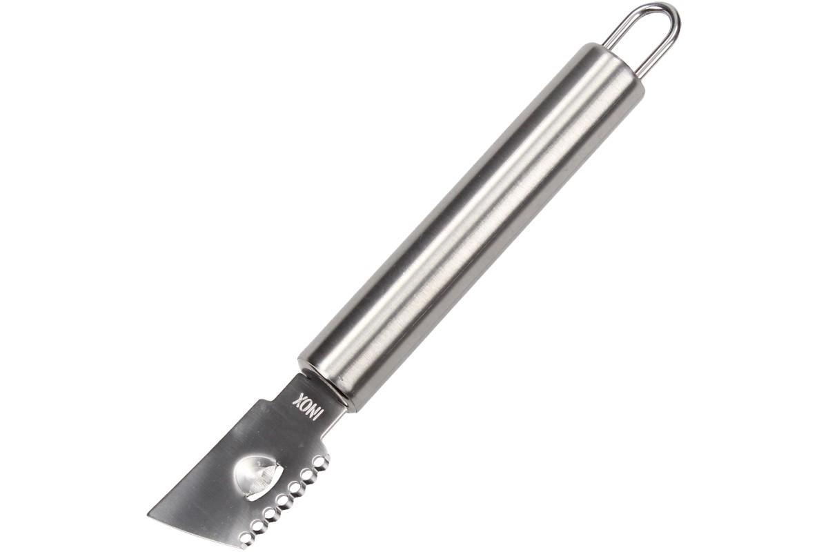 S tímto nerezovým loupačem na citrusovou kůru se snadno stanete umělcem v Carvingu - umělecké vyřezávání ozdob do kůry ovoce či zeleniny. Nerezový loupač krásně naškrábe hoblinky a spirály z citronové kůry pro přípravu moučníků a dezertů. Můžete ho použít i na tvrdý sýr typu Parmezán.