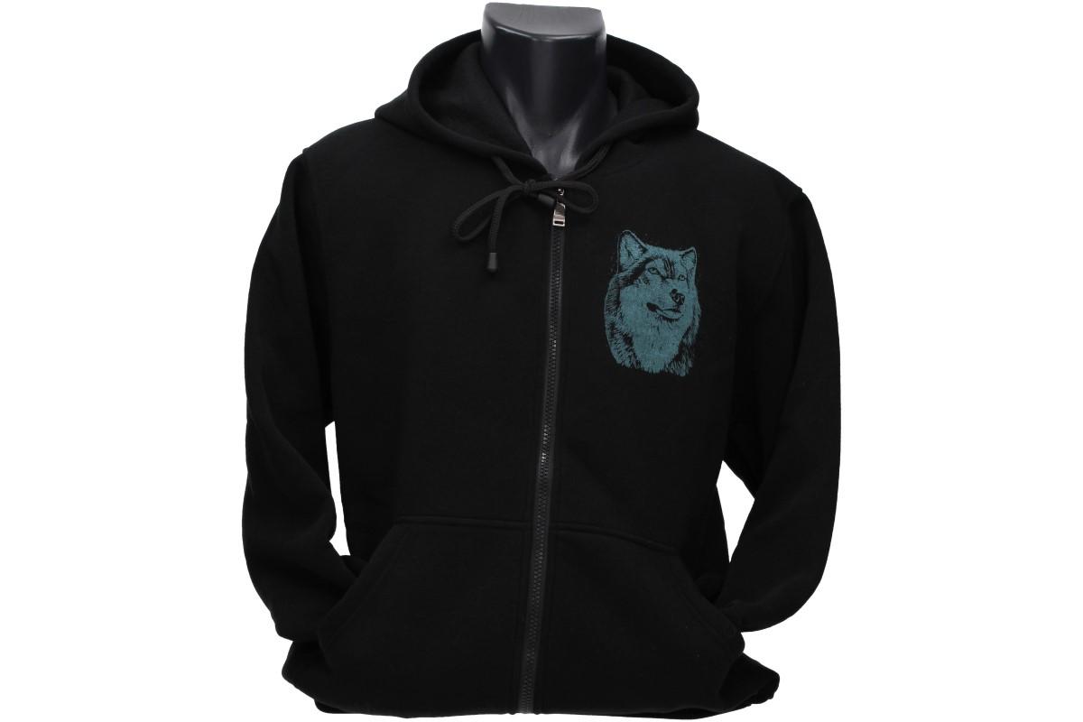 Není třeba mít všude na oblečení nápisy, obrázky jsou neutrální a výstižné samy o sobě jako tato mikina z naší nabídky. Mikina s krásně vyvedeným obrázkem hlavy Vlka, prokresleným do nejmenších detailů, zaujme na první pohled. Modrý, malý obrázek je v předu a vzadu je velká hlava vlka v barevném provedení. Mikina je navenek bavlněná, uvnitř je měkký a teplý fleece. Mikina má dlouhý rukáv, zip, kapuci se šňůrkou pro utažení a na stranách dvě kapsy. Tuhle nádhernou mikinu si jistě zamilují milovníci psů, a všichni kteří jsou svobodní a nespoutaní stejně jako vlci. Mikina je dodávána pouze v černé barvě. Kvalitní mikina se vyznačuje stálostí a sytostí barev. Navíc se mikina skvěle doplňuje s tričkem se stejným potiskem z naší nabídky.