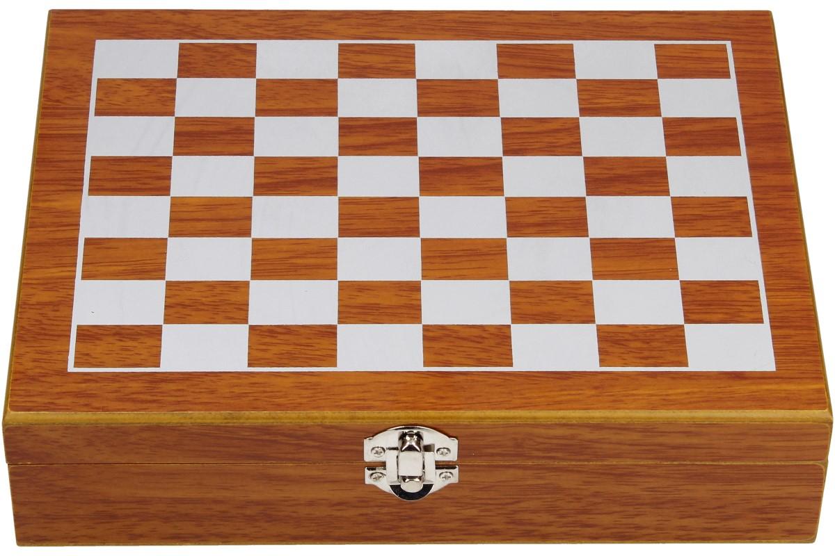 - Dřevěná dárková krabička s namalovanou šachovnicí navrchu