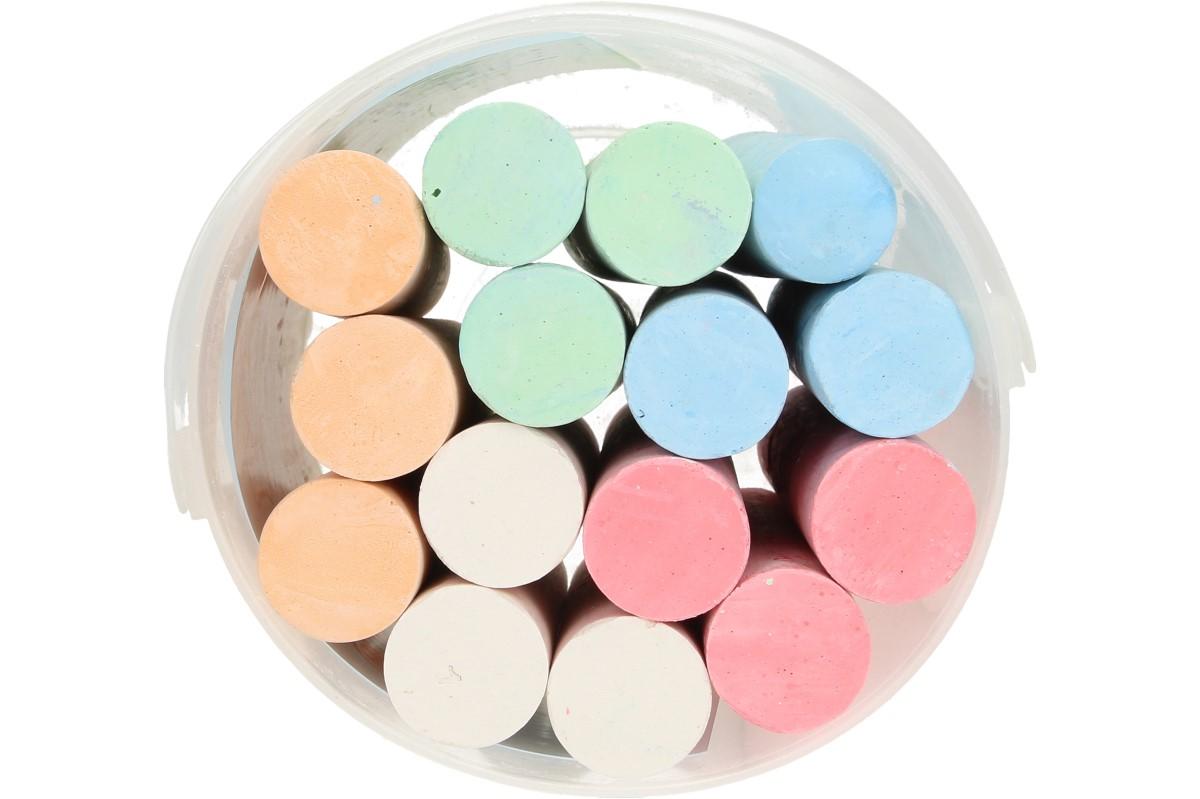 Barevné kompaktní křídy jsou velmi příjemné na dotek a díky kulatému tvaru se dobře drží v ruce. Při délce 10 cm a průměru 2 cm se nemusíte obávat, že by Vám křídy brzy došly. V balení je pět barev, od každé barvy tři kusy, červená, zelená, modrá, bílá, žlutá. Křídy slouží i k dočasnému označení různých materiálů a smývají se snadno vodou.