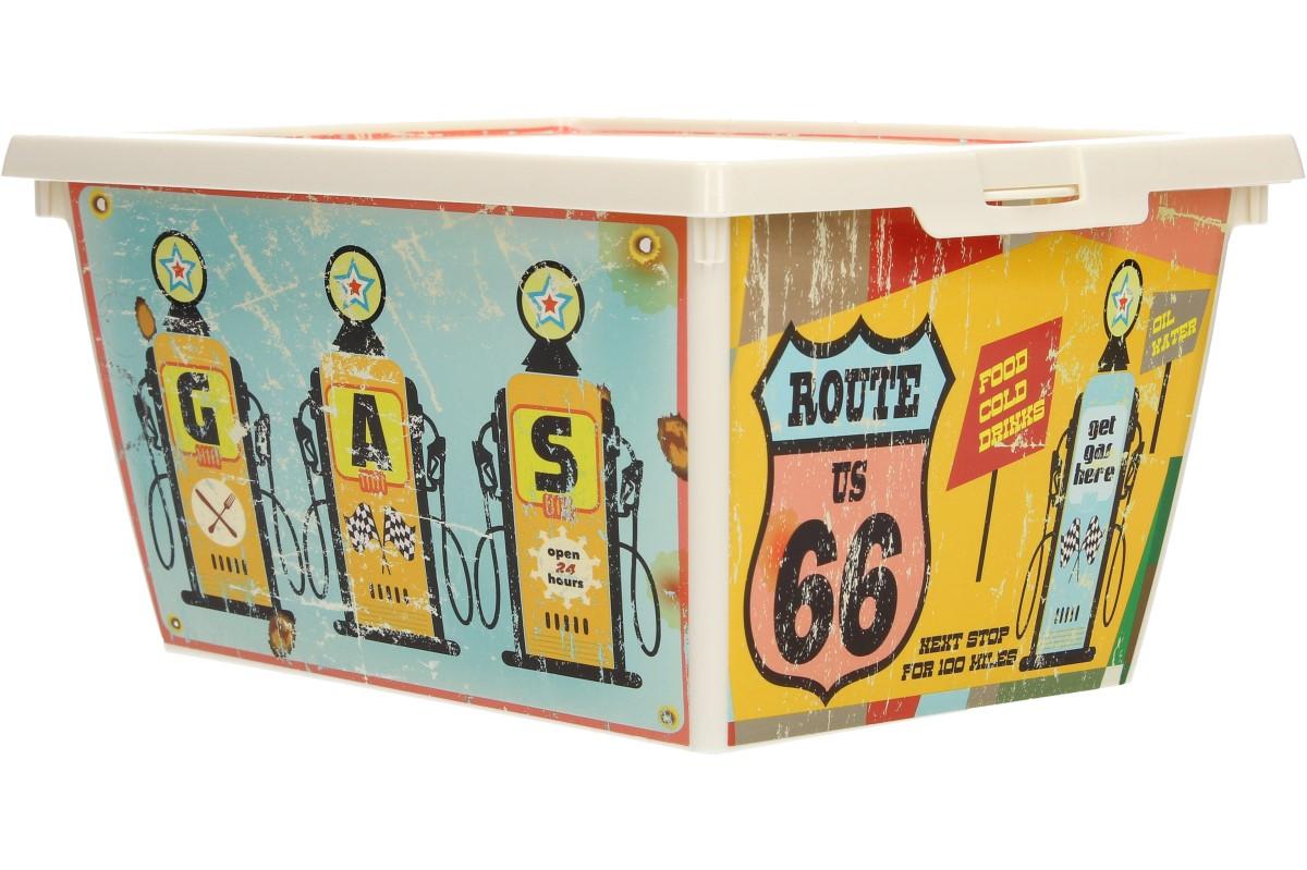 Praktický plastový box dodáváme ve třech různých velikostech se 3 různými potisky v retro vintage motivu. Potisk je ze všech stran, box se snadno udržuje hygienicky čistý.