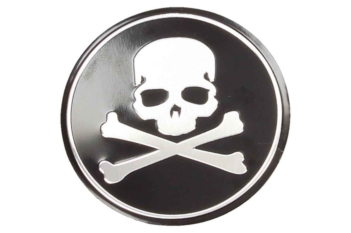 Kvalitní kovová samolepka lebka se skříženými hnáty o průměru 5,5 cm se může nalepit nejen na auto, loď nebo karavan, ale všude tam, kde chcete ukázat drsnější vzhled. Kvalitní barevná samolepka je vybavena lepící oboustrannou páskou dlouhé životnosti a obrázek je umístěný na aluminiovém plátu s ilustrací a nápisem lebky s hnáty