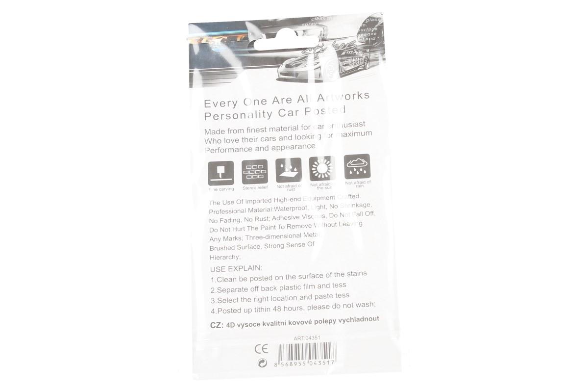 Předností této nálepky je fakt, že vydrží podstatně delší dobu než nálepka klasická papírová. Samolepka lebka s hnáty je dodávána pouze v černé barvě.