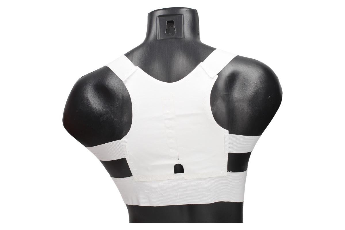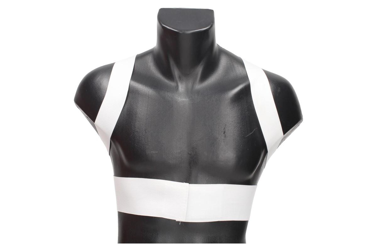 1. Vytáhněte ramenní popruhy přes ramena, ujistěte se, že textilní kapsy s magnety jsou nejblíže vašemu tělu.