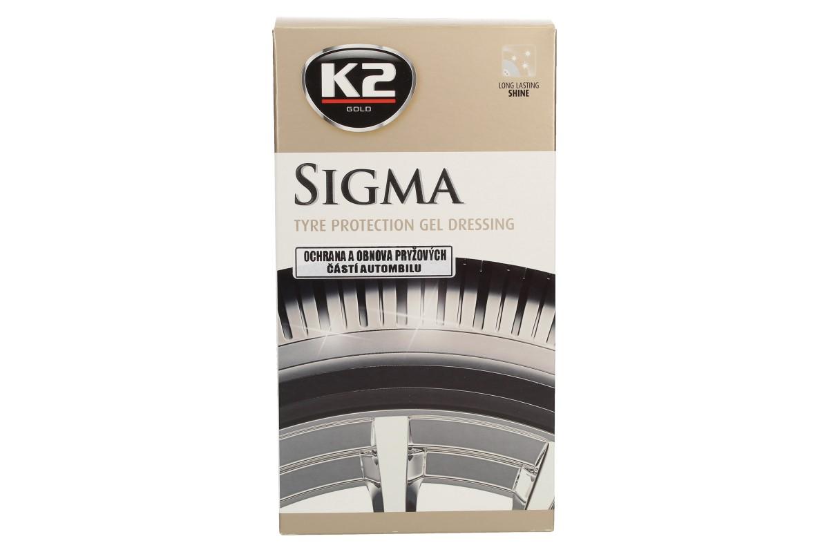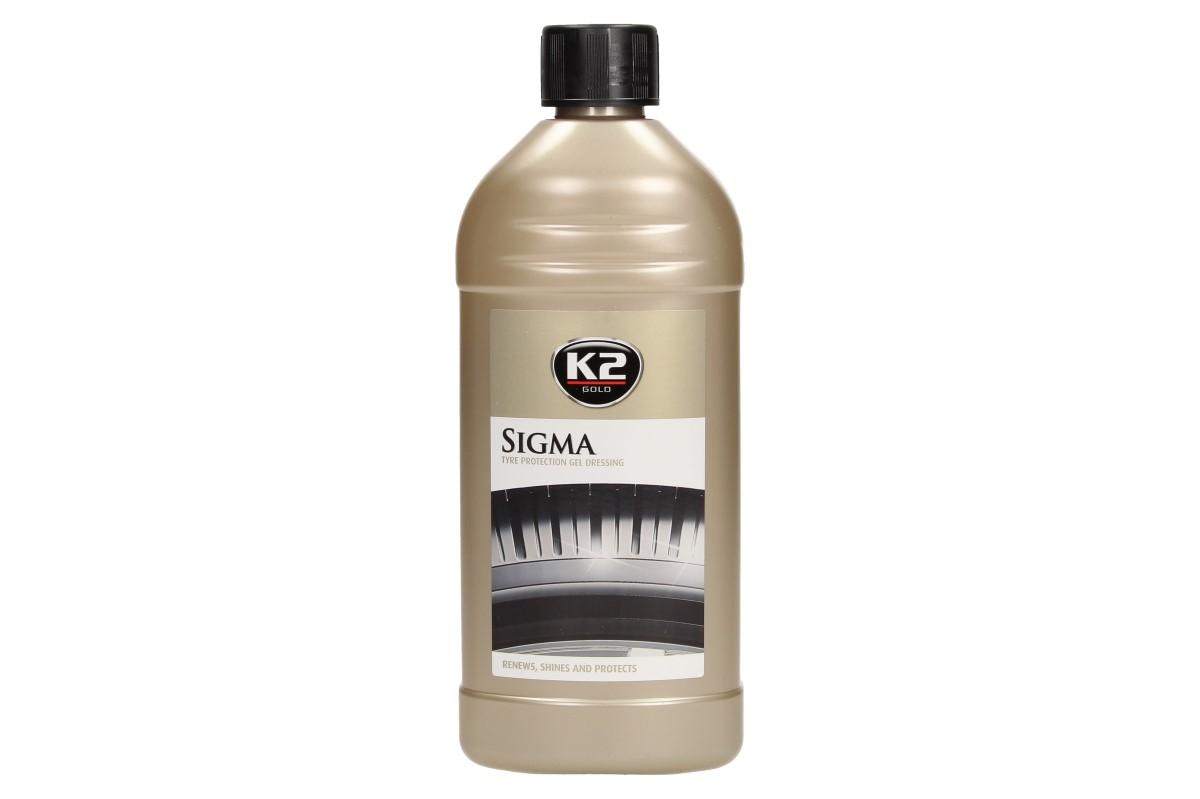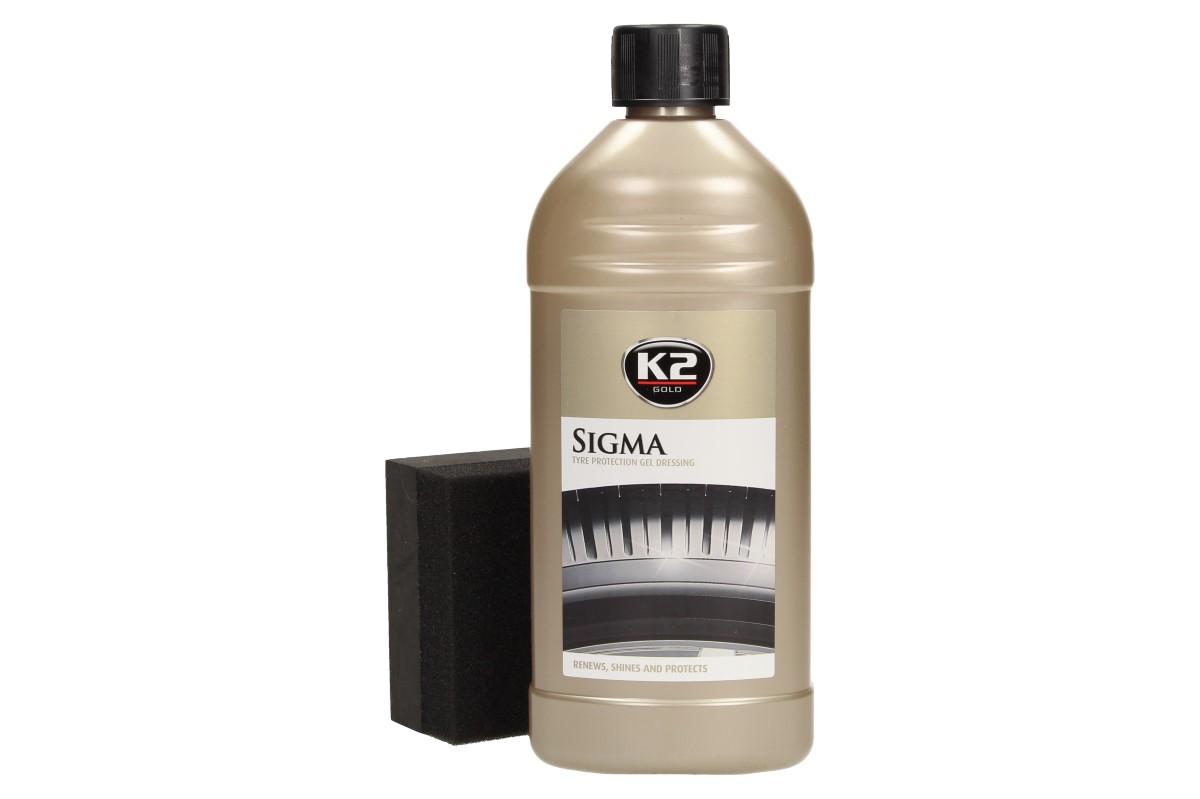 K2 GOLD SIGMA 500 ml - ochrana a obnova pryžových částí automobilu regeneruje, chrání a leští pneumatiky. Obnovuje původní barvu pneumatik, leští je vrací tzv. mokrý efekt. Nezanechává šmouhy a zajišťuje dlouhotrvající ochranu. Zabraňuje stárnutí pneumatik. Zajišťuje, aby voda na pneumatikách vytvářela kapičky. Omezuje usazování nečistot. Má dlouhotrvající efekt. Snadno se nanáší.