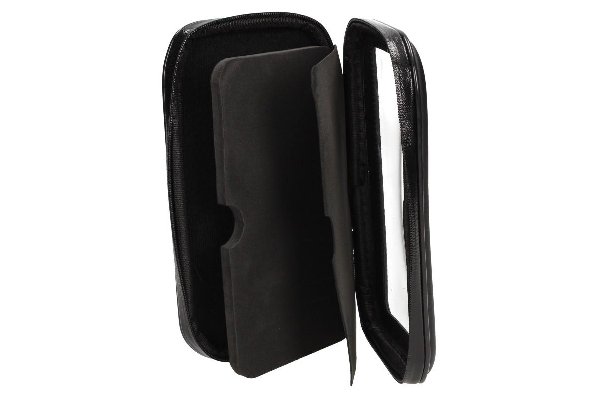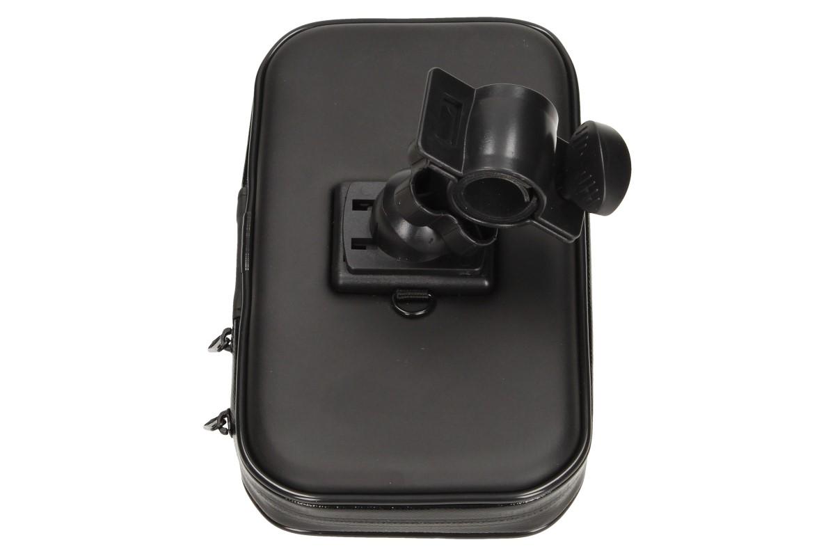Pouzdro na telefon na řídítka 18 x 10 cm je skvělé na cesty na kole, motorce nebo koloběžce. Snadno se instaluje na řídítka, díky upeňovacím šroubům. Pouzdro je odolné vůči povětrnostním vlivům, děšti i sněhu. Pouzdro je vybaveno průhlednou pevnou fólií, která zabraňuje poškrábání či poškození vašeho mobilu a i díky této fólii vidíte na displej a můžete při jízdě sledovat navigaci nebo jiné aplikace. V pouzdře naleznete dvě pěnové podložky s různou tloušťkou, které slouží k lepšímu upevnění telefonu, podle toho, jak široké zařízení máte.