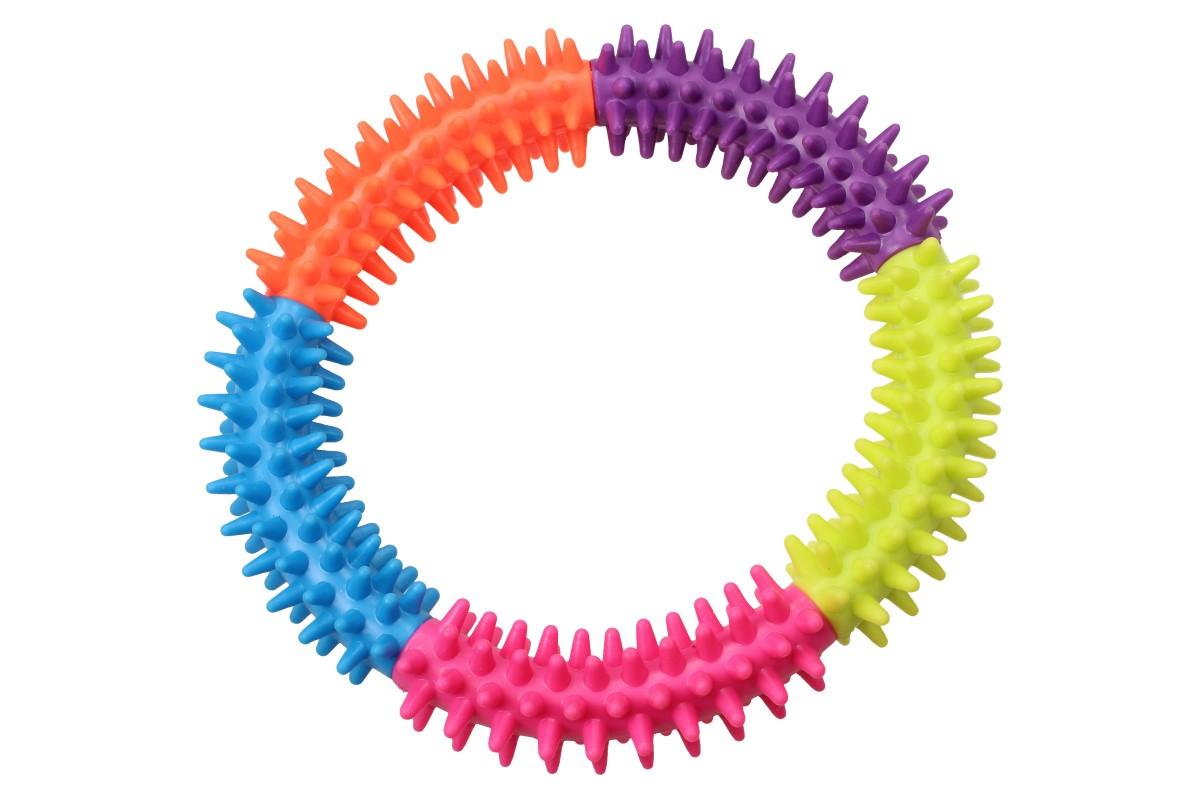 Gumový barevný kruh hračka pro zvířátka je odolná latexová hračka, která dlouhodobě zabaví vaše mazlíčky. Hračka nevydává žádné zvuky, tudíž vás nebude při hraní nic rušit. Hračka je vhodná pro malé i velké pejsky. Gumový barevný kruh je odolný vůči ostrým zubům, má dlouhotrvající využití.