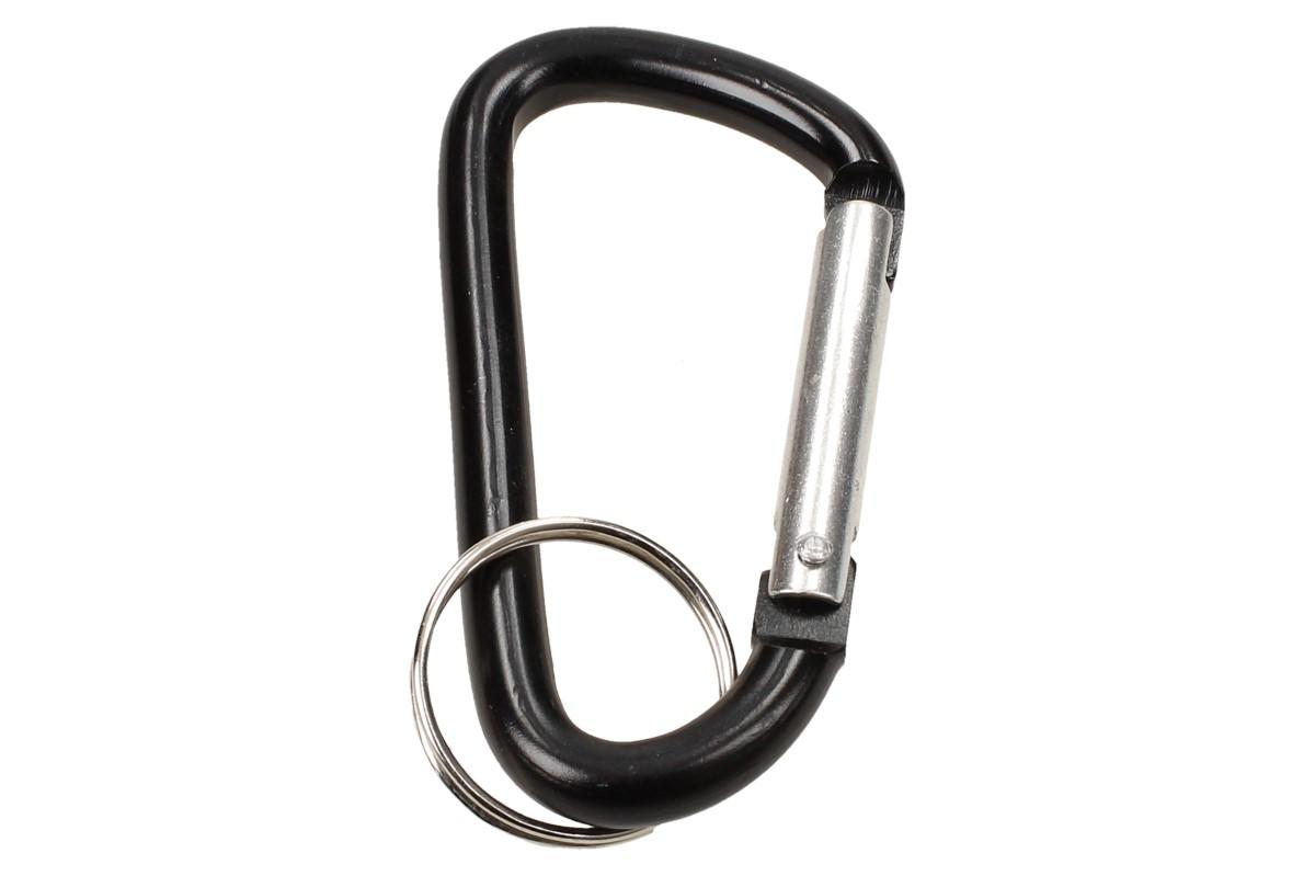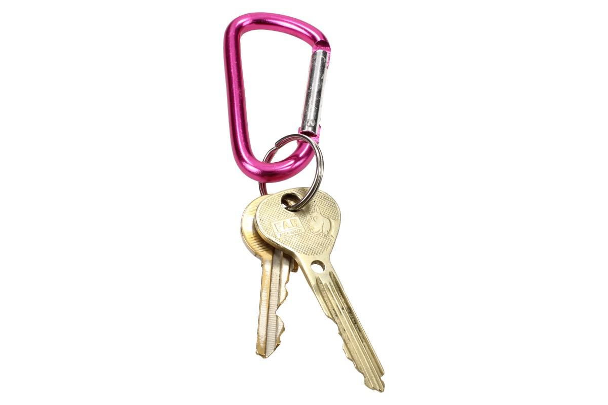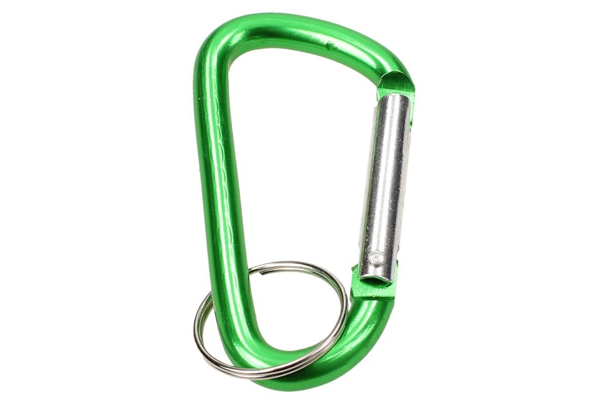 Karabina na klíče 7 x 3,5 cm velmi jednoduchá a vkusná karabina v barevném provedení. Dodáváno v lesklých, zajímavých barvách: zelená, modrá, červená, stříbrná, oranžová, fialová, růžová a černá. Karabina je praktická a hodí se na zavěšení např. na opasek, na batoh, kabelku, tašku nebo i na oblečení. Karabina obsahuje kovový kroužek na klíče.