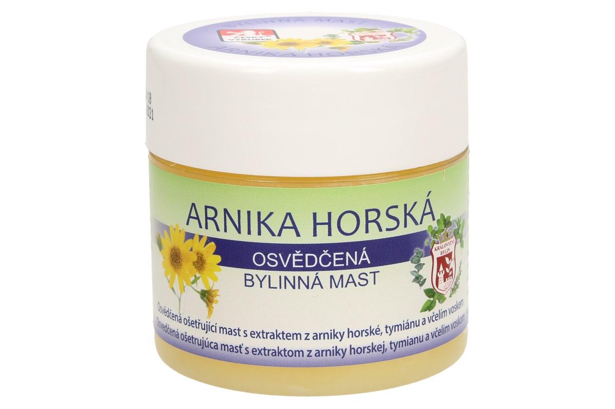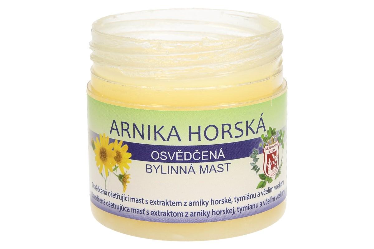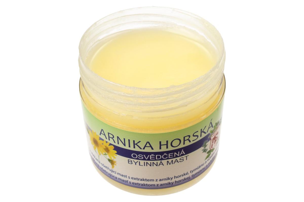 Bylinná mast 150 ml - arnika horská je výborným prostředkem k masáži, jemná masáž příznivě působí na dolní končetiny. Výtažek z armiky působí regeneračně při akné a drobných oděrkách. Mast je vhodná ke změkčení zhrublé pokožky, mozolů a působí k lepšímu vstřebávání podlitin. Návod k použití: Mast aplikujte na postižené místo několikrát denně. Pro zvýšení účinku je vhodné nanést na postiženou oblast větší množství přípravku, ovázat a nechat působit dlouhodobě – například přes noc.