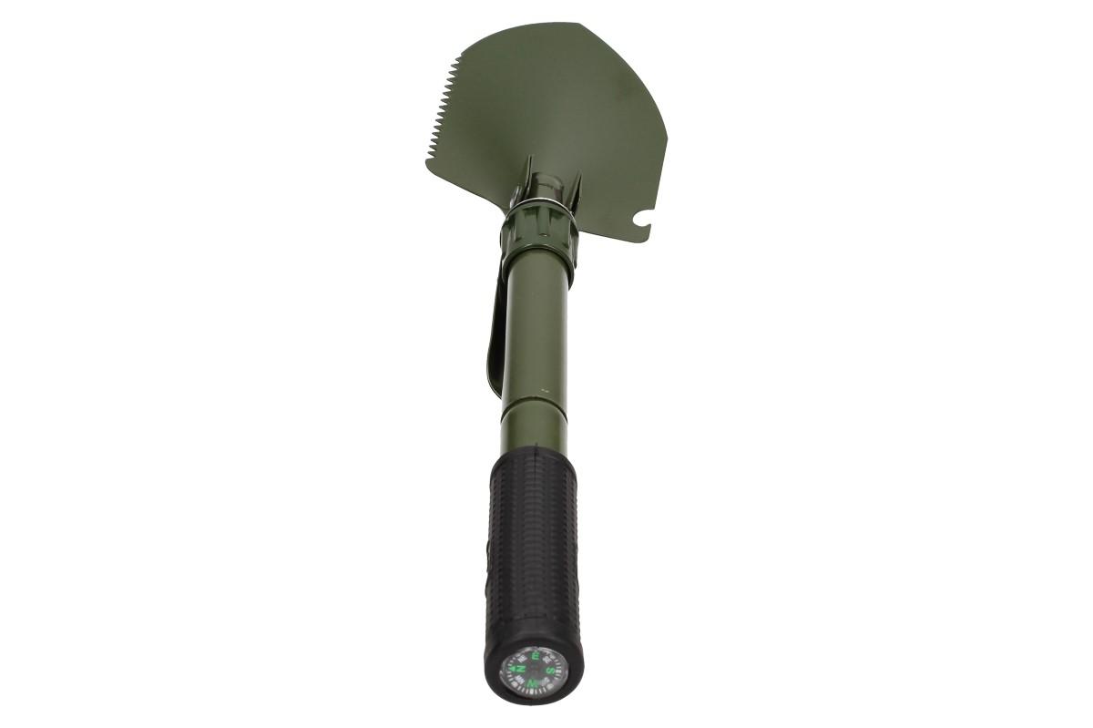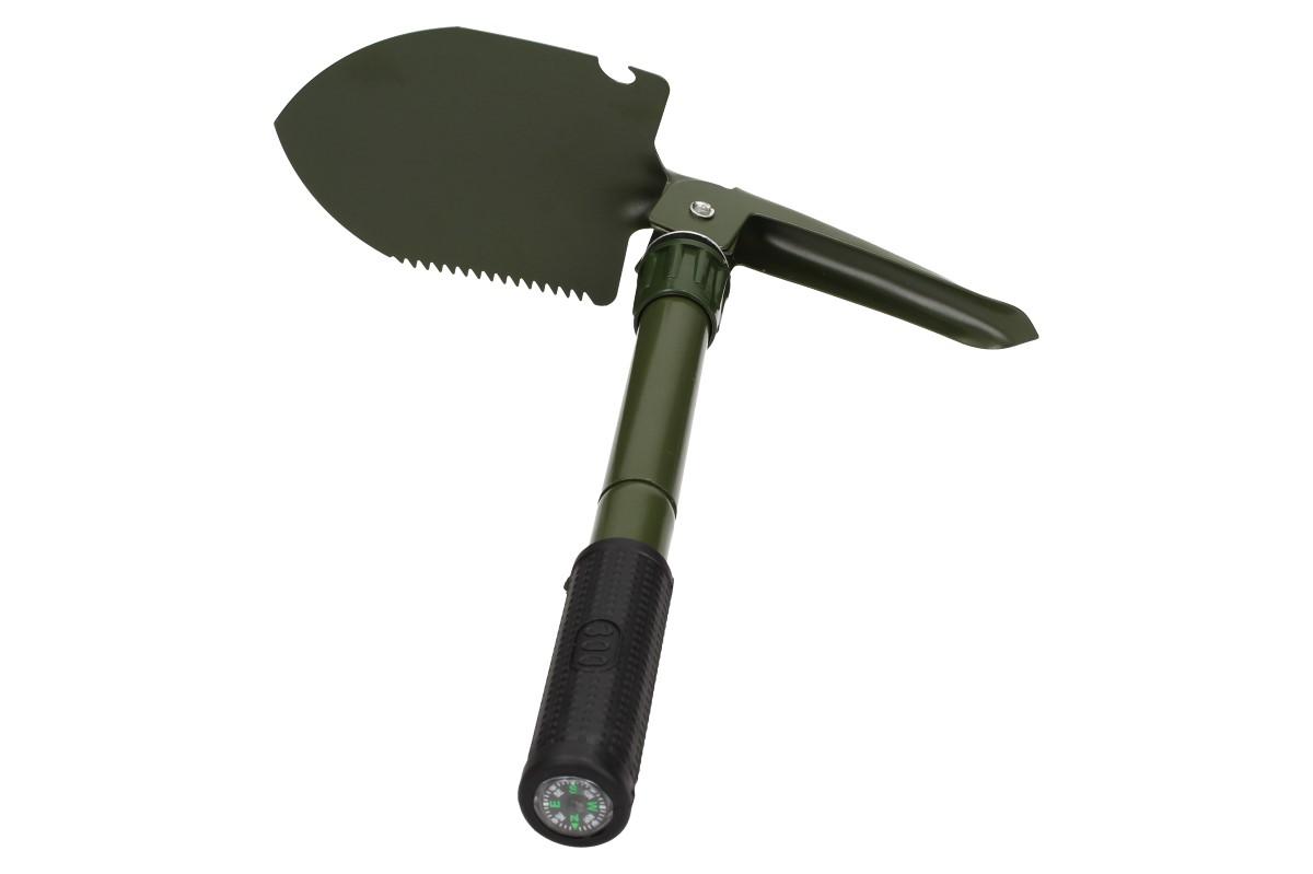 Skládací lopatka s pouzdrem malá v kovovém provedení o délce 41 cm a nabírací plochou 10 x 13 cm. Je skvělá pomůcka pro všechny trampy, rybáře, militaristy, hledače pokladů a milovníky outdoorových aktivit. Je možné jí využít i na zahradě, chalupě, nebo ji pro všechny případy vozit stále v autě apod. Lopatka má více funkcí. Lze jí složit do polohy rýče nebo motyky a má ozubenou hranu, která může posloužit v přírodě jako pilka. Navíc lze lopatku složit do praktického nepromokavého pouzdra, které lze umístit na opasek, a tak máte lopatku v přírodě stále po ruce.