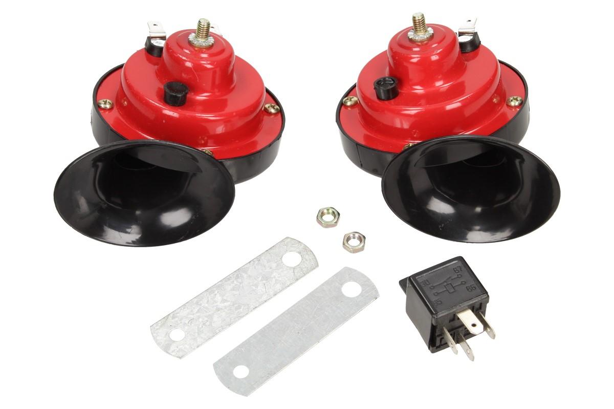 Šnekové klaksony HR-3010 12 V je dvojice výkonných turbínových klaksonů se šnekovým zvukovodem. Souzvuk obou klaksonů je s různými tóny - vysoký 510 Hz a nízký 410 Hz tón. Souzvuk se vyznačuje velice ostrým a výrazným projevem. Plast šnekového klaksonu je proveden v čistě černé barvě. Automobilové (imobilizační) relátko 12V/30A není součástí balení.