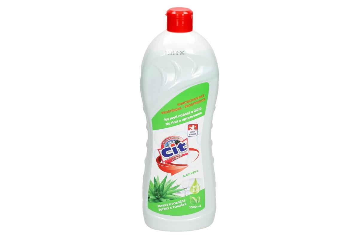 CIT tekutý prostředek na nádobí 1 L Aloe Vera s příjemnou vůní . CIT tekutý prostředek na nádobí se vyznačuje velmi dobrou mycí a odmašťovací schopností. Výborně čistí a dává čistému předmětu a povrchu zářivý lesk. Prostředek je velice šetrný k pokožce. Dávkování: 1 lžíce na 5 L vody.
