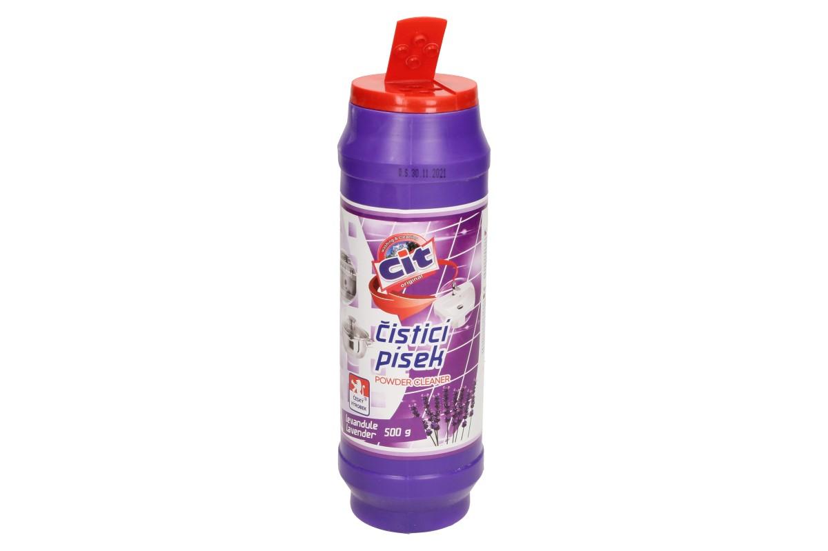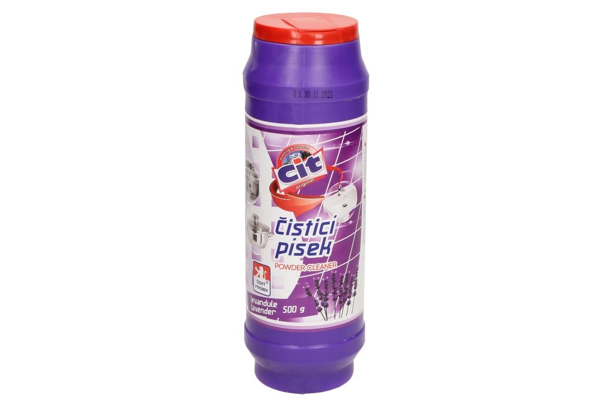 CIT čistící práškový písek na nádobí 500 g Levandule velice dobře a efektivně čistí veškeré nečistoty a usazeniny. Ideální např. na kuchyňské zařízení, nádobí, vany, umyvadla, sanitární předměty, obklady, apod. Prostředek s příjemnou vůní levandule.