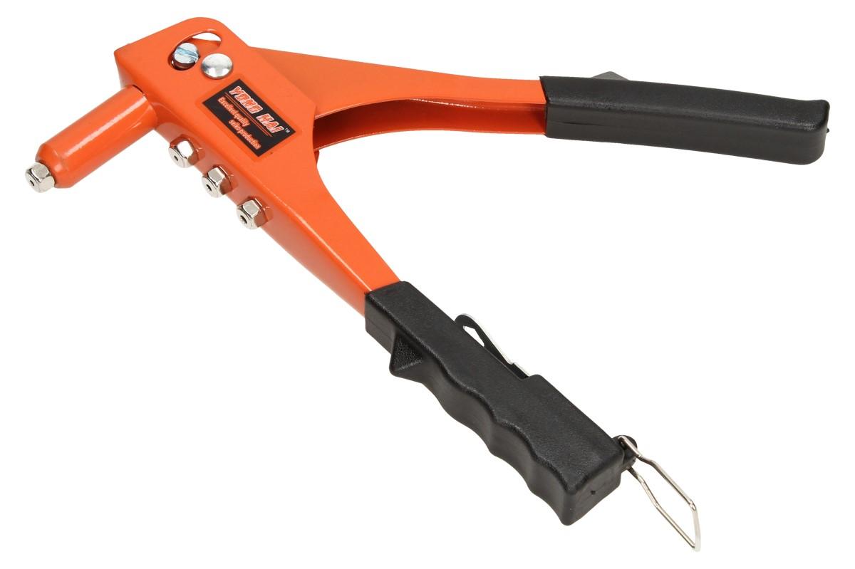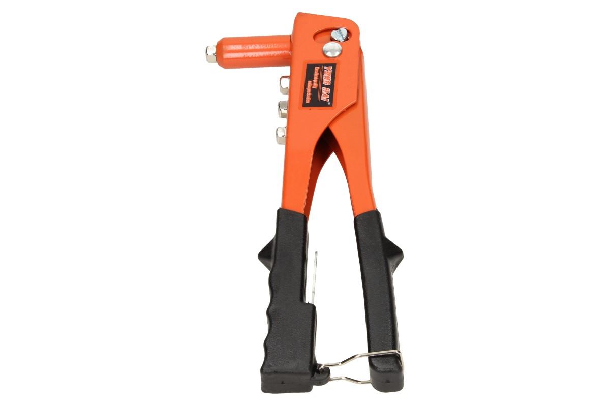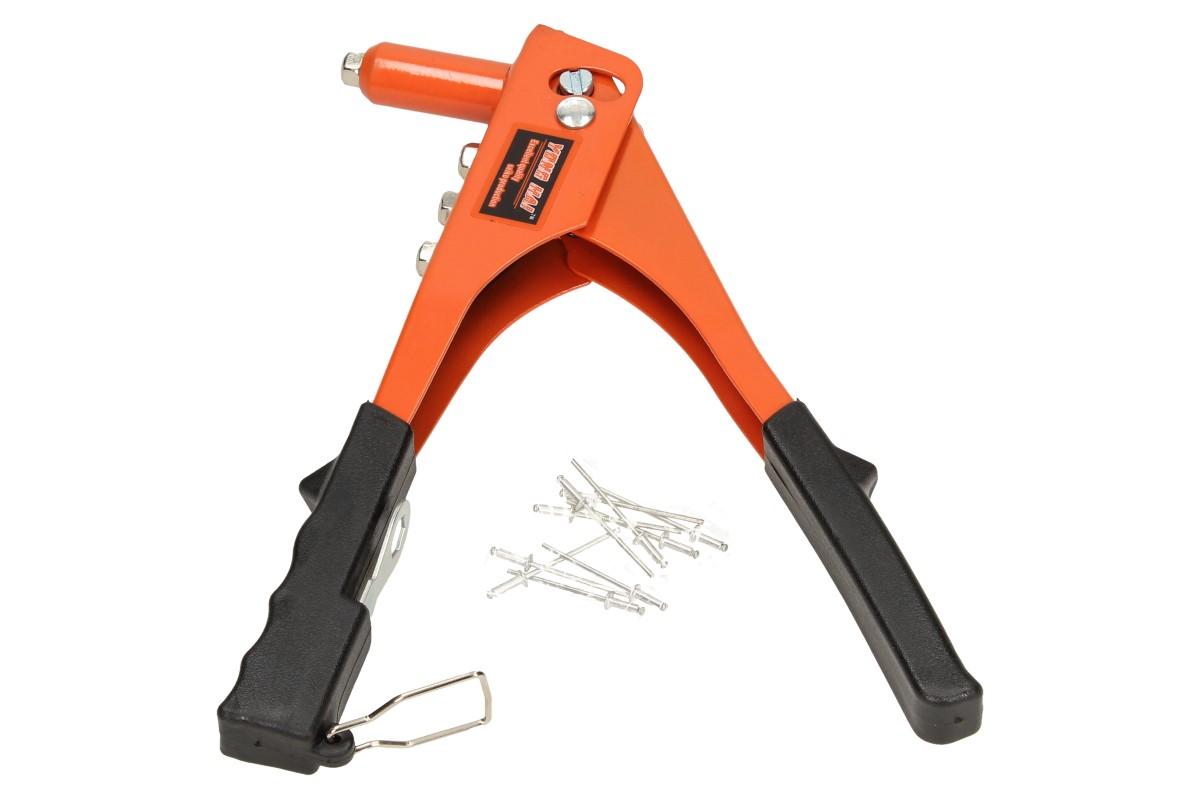 Sada nýtovací kleště s koncovkami s ergonomickou rukojetí pro snadnější a bezpečnější manipulaci při práci. Kleště jsou vhodné pro výměnu nýtovacích koncovek. Např: pro ALU, nerez, ocel a měď. Kleště jsou určeny pro trhací nýty 2,4-3,2-4,0-4,8mm. Tato sada je velmi praktická a hodí se do každé dílny i garáže. Vyrobeno z kvalitní oceli.