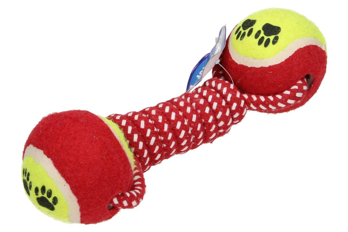 Hračka pro psa provaz s tenisáky a ťapkami je kvalitní a zábavná hračka pro vaše domácí mazlíčky. Hračka je vhodná na aportování, přetahovanou, či schovávanou. Hračky pro psy slouží nejen ke hře, ale také k výcviku psa – psi milují aportování, při kterém si zlepšují postřeh a učí se povely. Tato hračka je vyrobena ze dvou tenisáků a pevného provazu. Délka hračky je 22 cm.