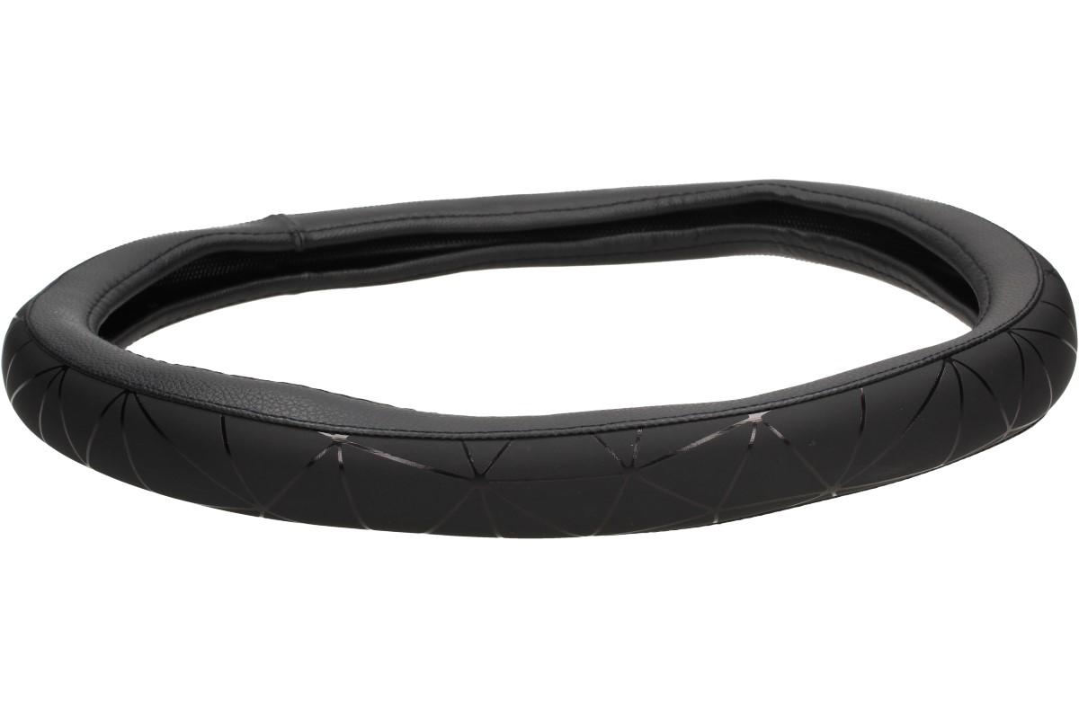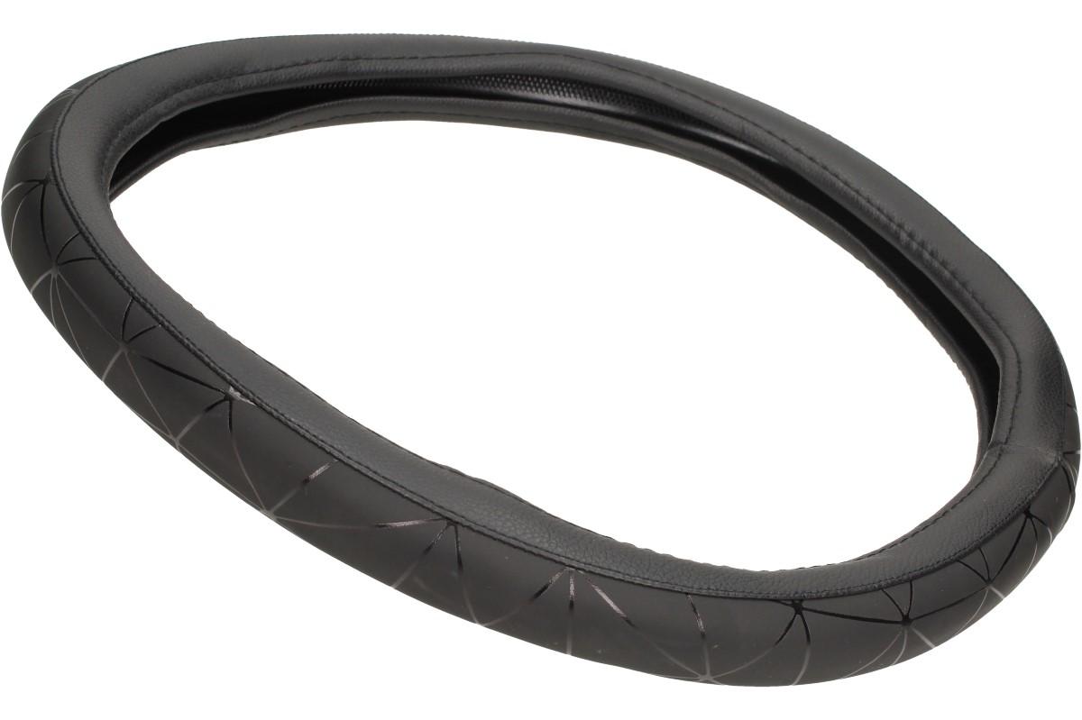 Černý nasazovací potah volantu je vhodný a pohledný do každého vozidla. Potah je navržen v černé barvě s decentním, designovým vzorováním. Tento potah Vám uleví od rozpáleného volantu, či zmrzlého volantu v zimě. Potah má černou barvu, tudíž se hodí do každého interiéru. Instalace potahu na volant je velmi jednoduchá, stačí jen nasadit navolant. Průměr volantu je 35 cm.