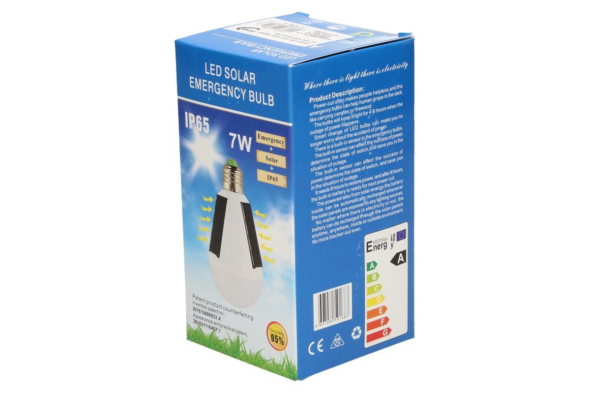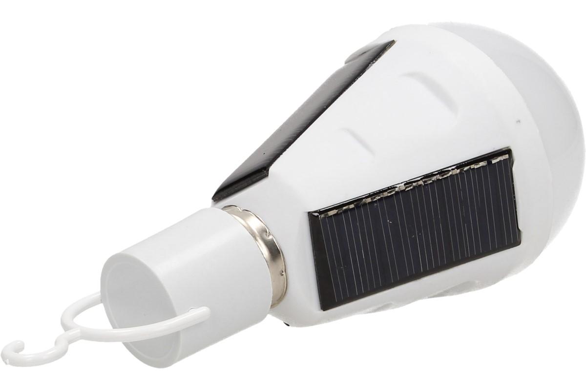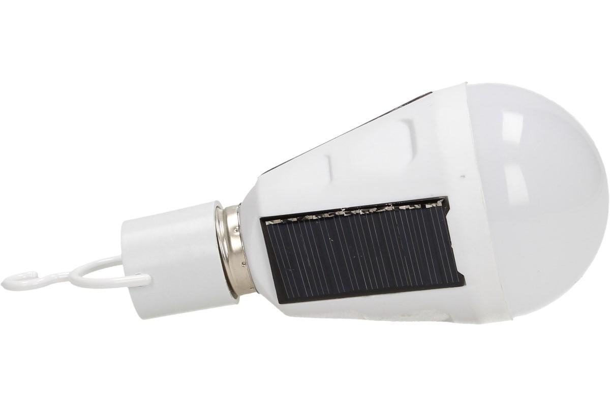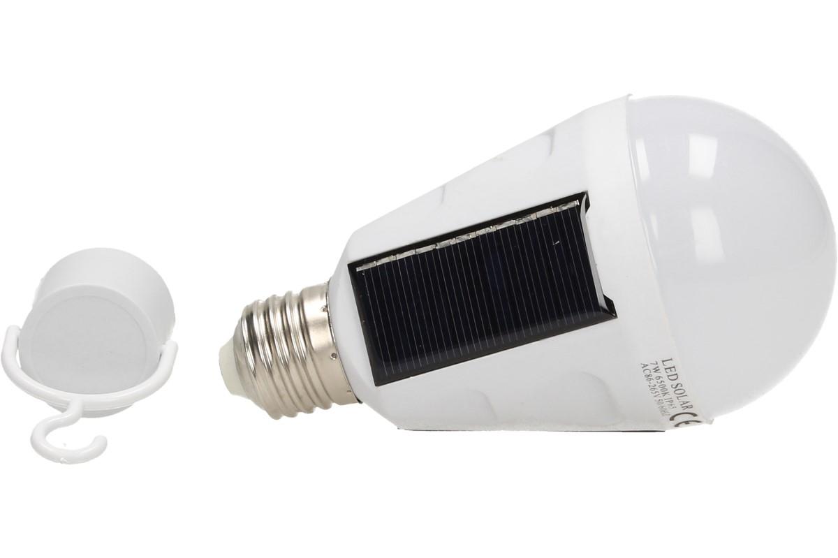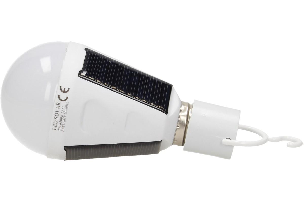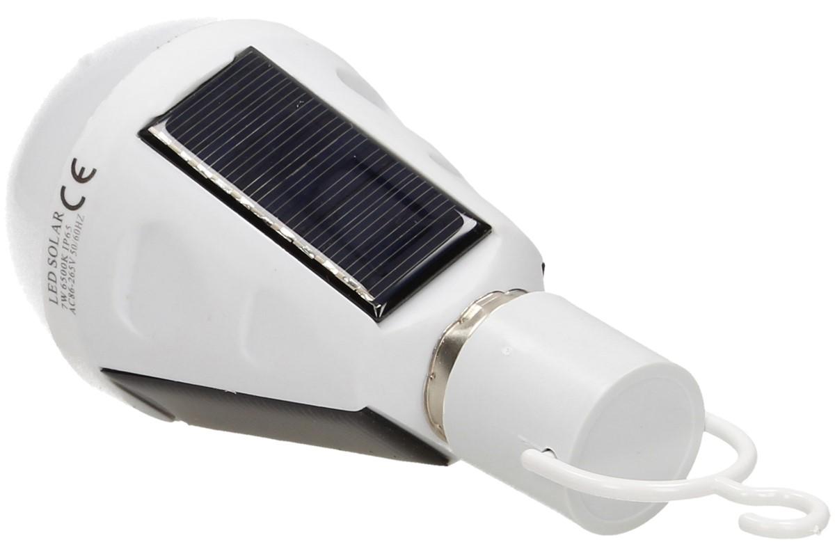 Vybavena solárními panely, díky kterým nepotřebuje elektrický proud. Je vybavena závěsným háčkem a hodí se všude tam, kde není v dosahu elektrický proud. Krytí IP65, výkon 7W, napětí 240 - 220 V, 6500 K. Lze používat jako klasickou žárovku nebo žárvku, napájenou ze slunce