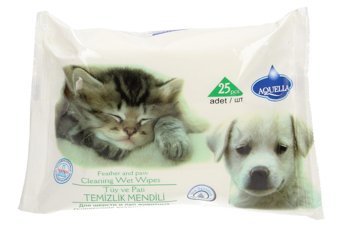Aquella čistící vlhčené ubrousky poskytují kompletní péči pro srst a kůži zvířat. Efektivně odstraňují špínu a skvrny ze zvířecí srsti a tlapek. Doporučeno pro použití po každé procházce. Odstraňují pach ze srsti a tlapek a poskytují přirozený pocit. Neobsahuje alkohol