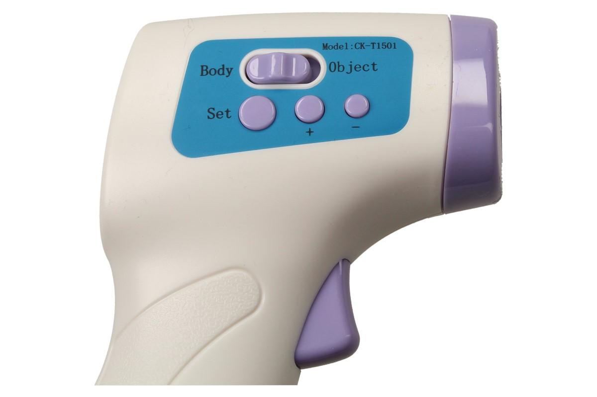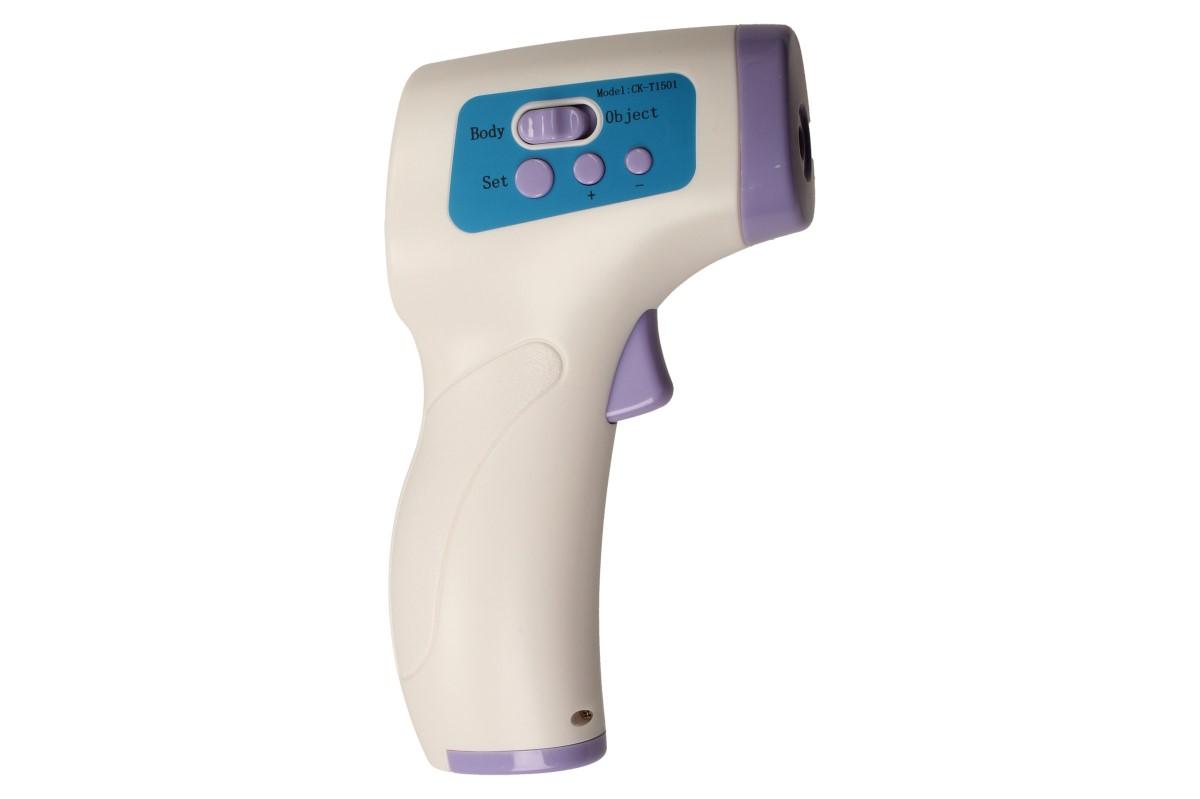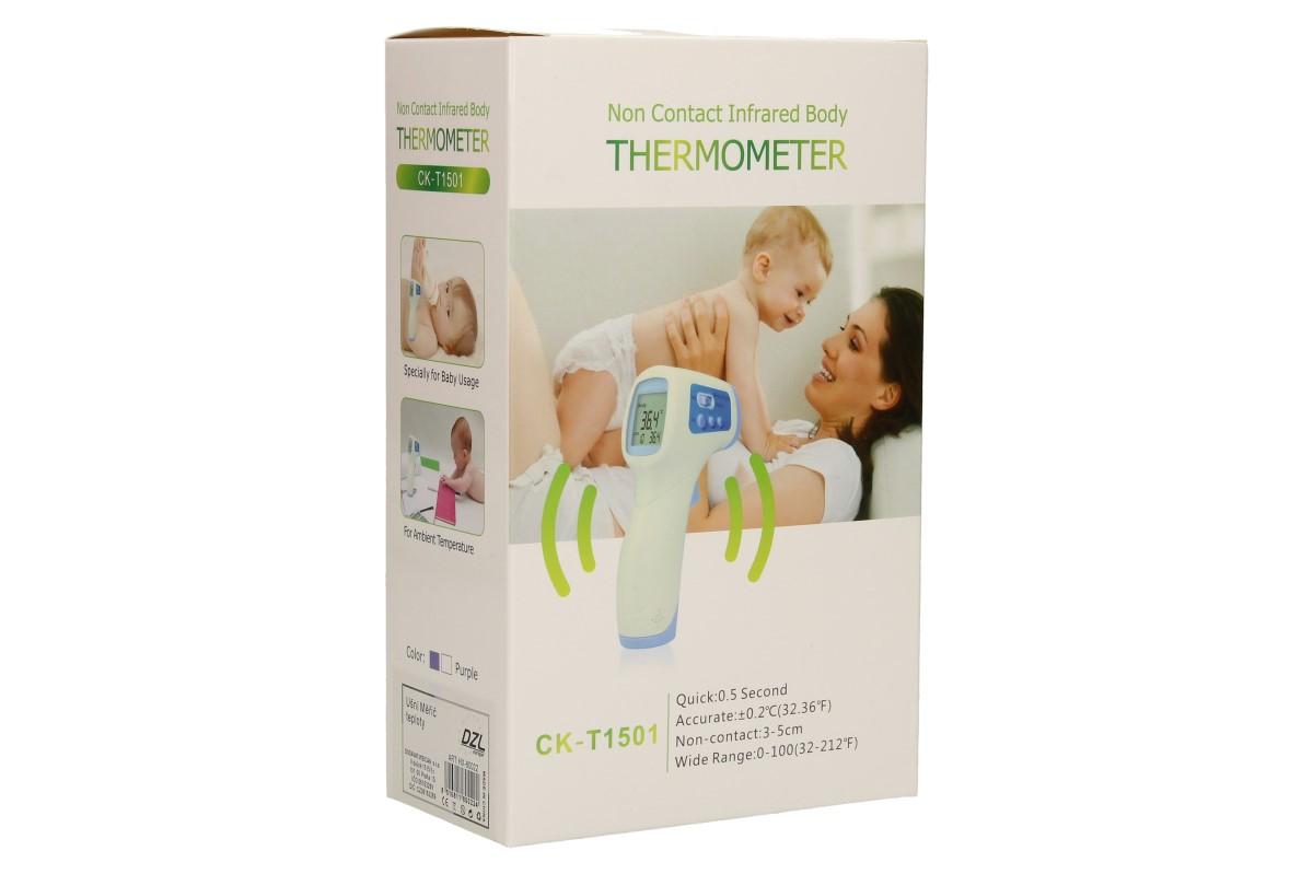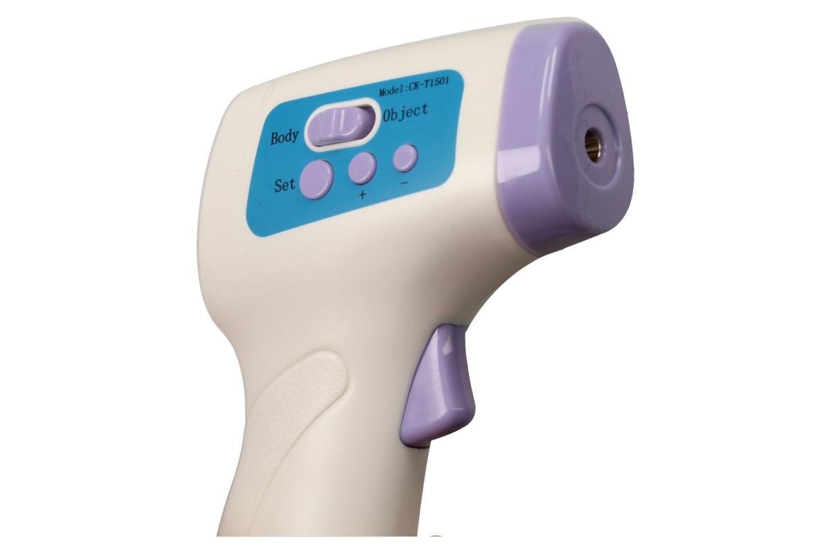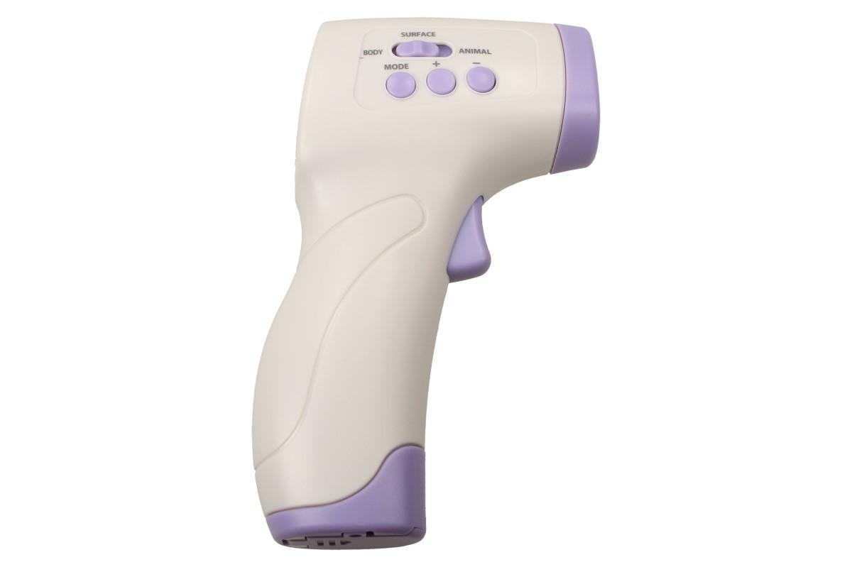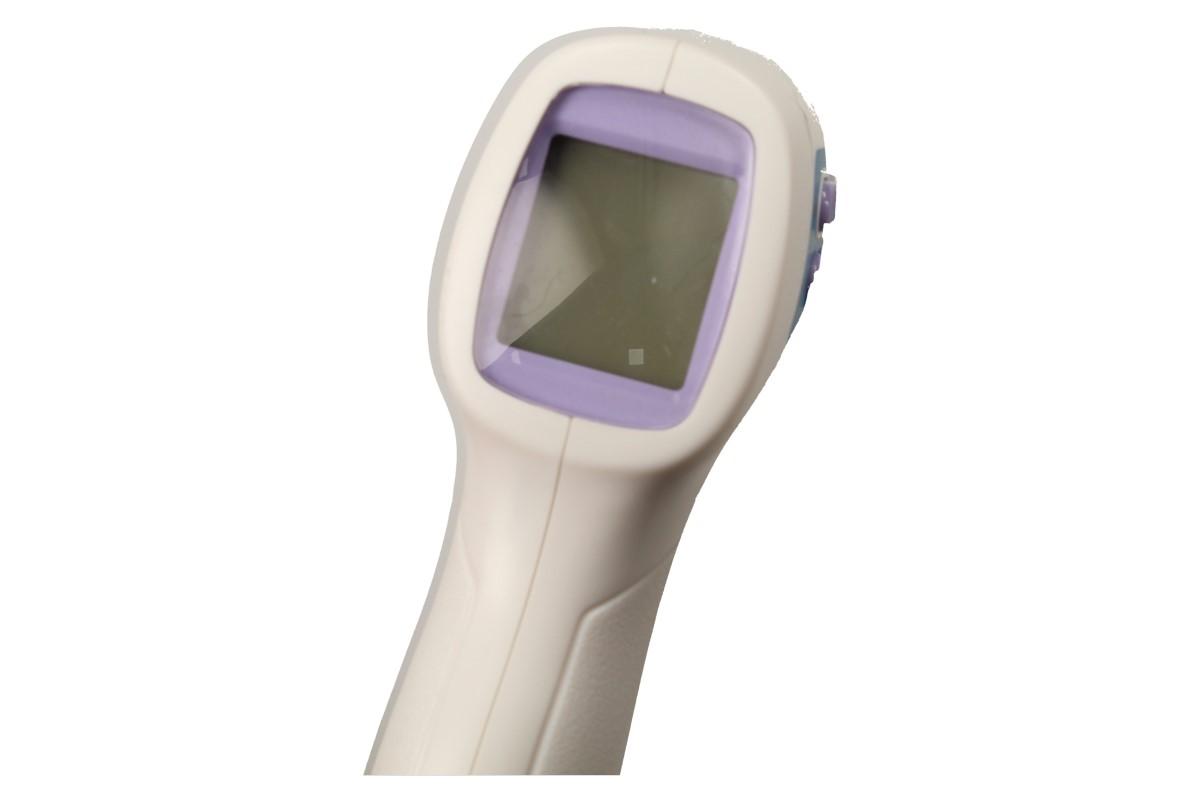 Bezkontaktní teploměr DHH-A01 měří tělesnou teplotu pomocí infračerveného záření, stačí se přiblížit na 3-5 cm k čelu měřeného a stiskem tlačítka. Má velký podsvícený displej, díky kterému jsou snadno čitelné naměřené hodnoty. Výrobek má paměť na 32 měření, jednoduše se ovládá pomocí jednoho tlačítka, zabudován alarm při vysoké teplotě, vysílá zvukové signály na konci měření. Pomocí teploměru lze měřit i teplotu vody ve vaně nebo pití v lahvičce. Pohodlně se drží.