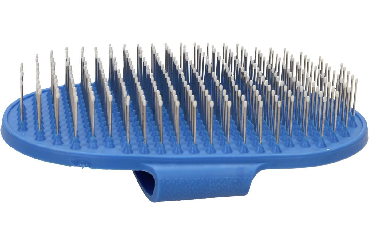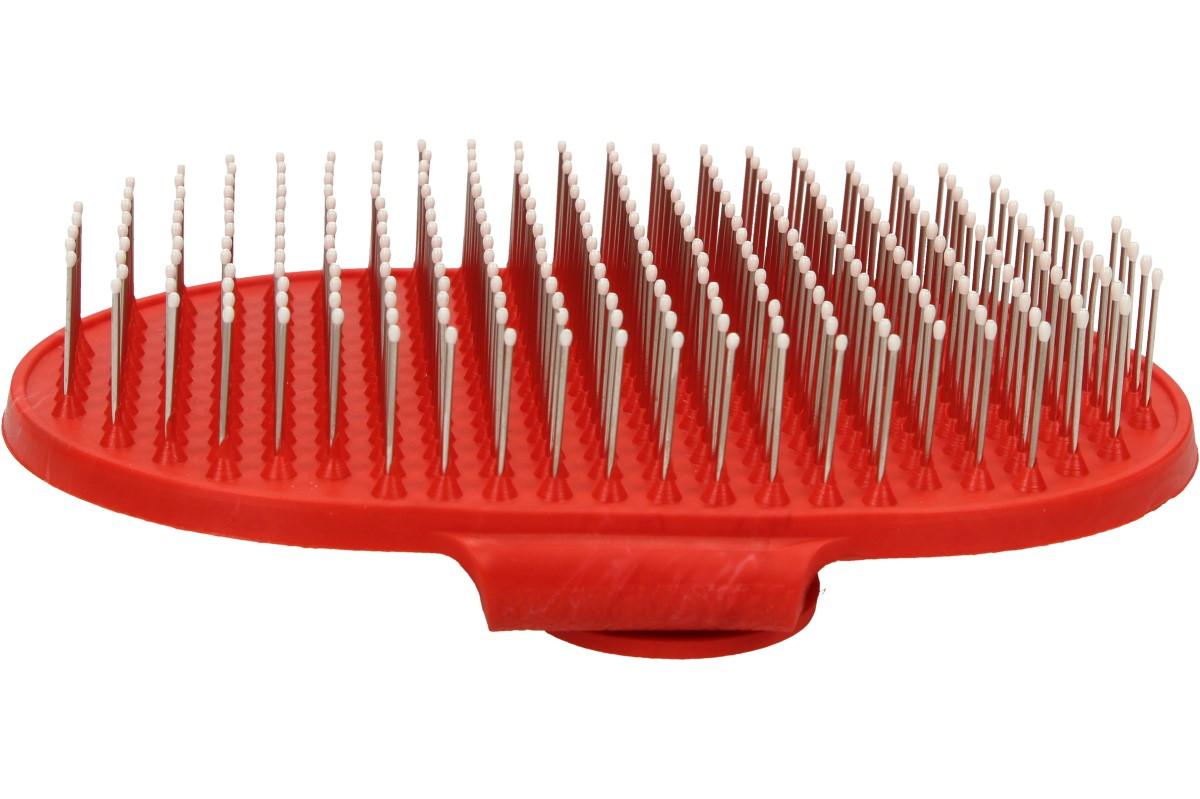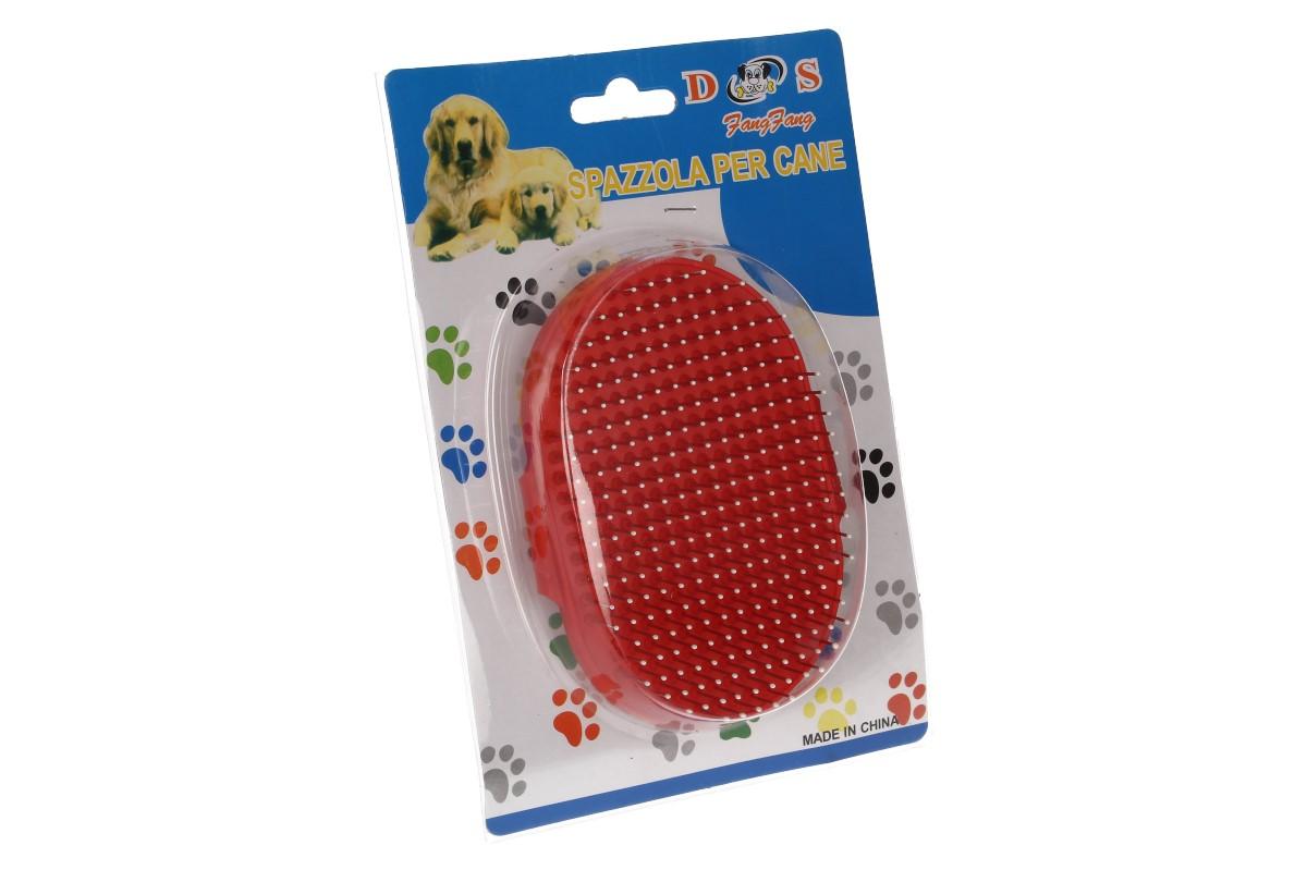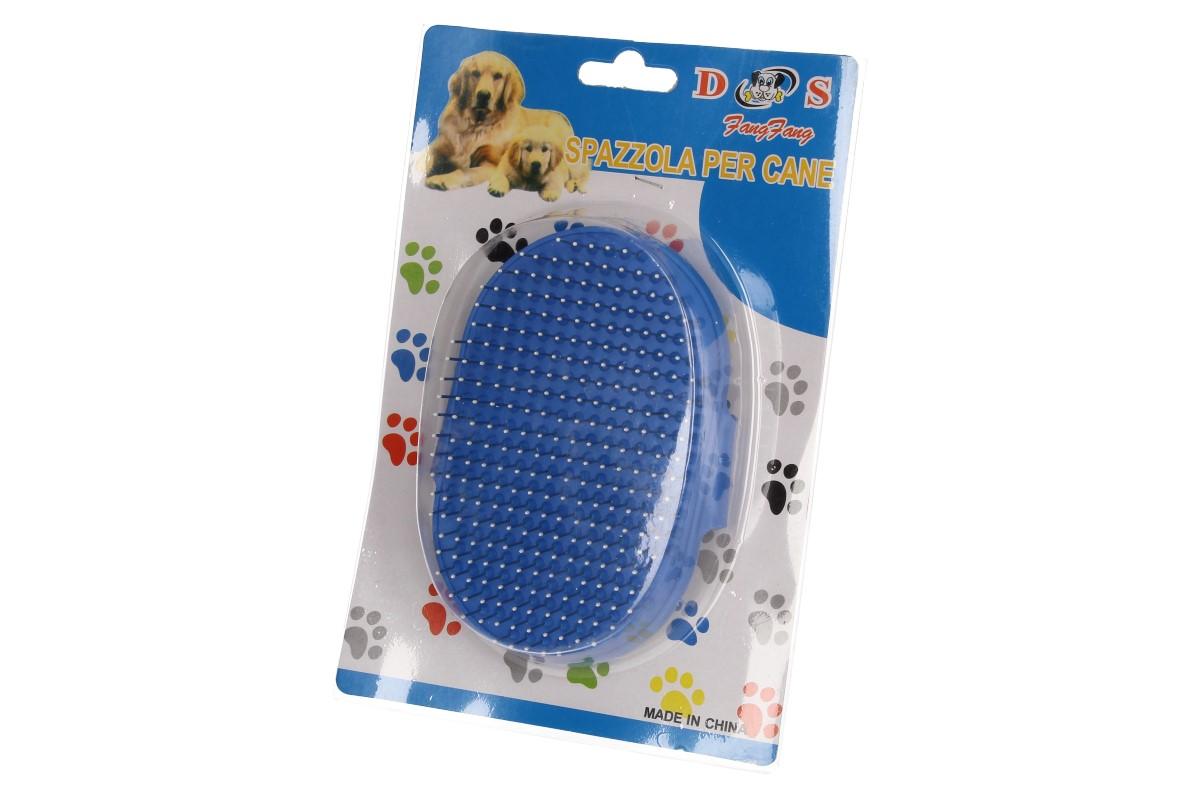 Gumový oválný kartáč s nastavitelným páskem, nerezavějícími kovovými drátky a kuličkami. Je vhodný pro každé dlouhosrsté zvíře. Velmi praktický kartáč – hrubou a nepoddajnou srst psů výborně rozčesává, uhlazuje a čistí do hloubky. Pravidelné kartáčování srsti zbavuje psa přebytečných chlupů, uhynulých parazitů a stimuluje krevní oběh.