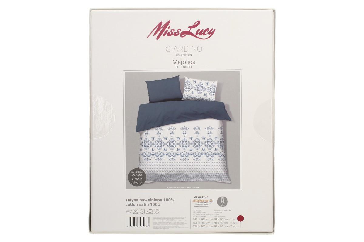 Povlečení ze 100% saténové bavlny na jednu postel s uzavíráním na zip. Souprava ložního povlečení se skládá z povlaků na polštáře 70 x 90 cm a povlaku na přikrývku 140 x 200 cm. Povlečení má také oboustranný vzor, který umožňuje vytvořit v ložnici dvě různá uspořádání . Na jedné straně je bílá kombinována s modrým dekorativním motivem, na druhé straně v jemných vzorech vládne elegantní námořnická modrá.