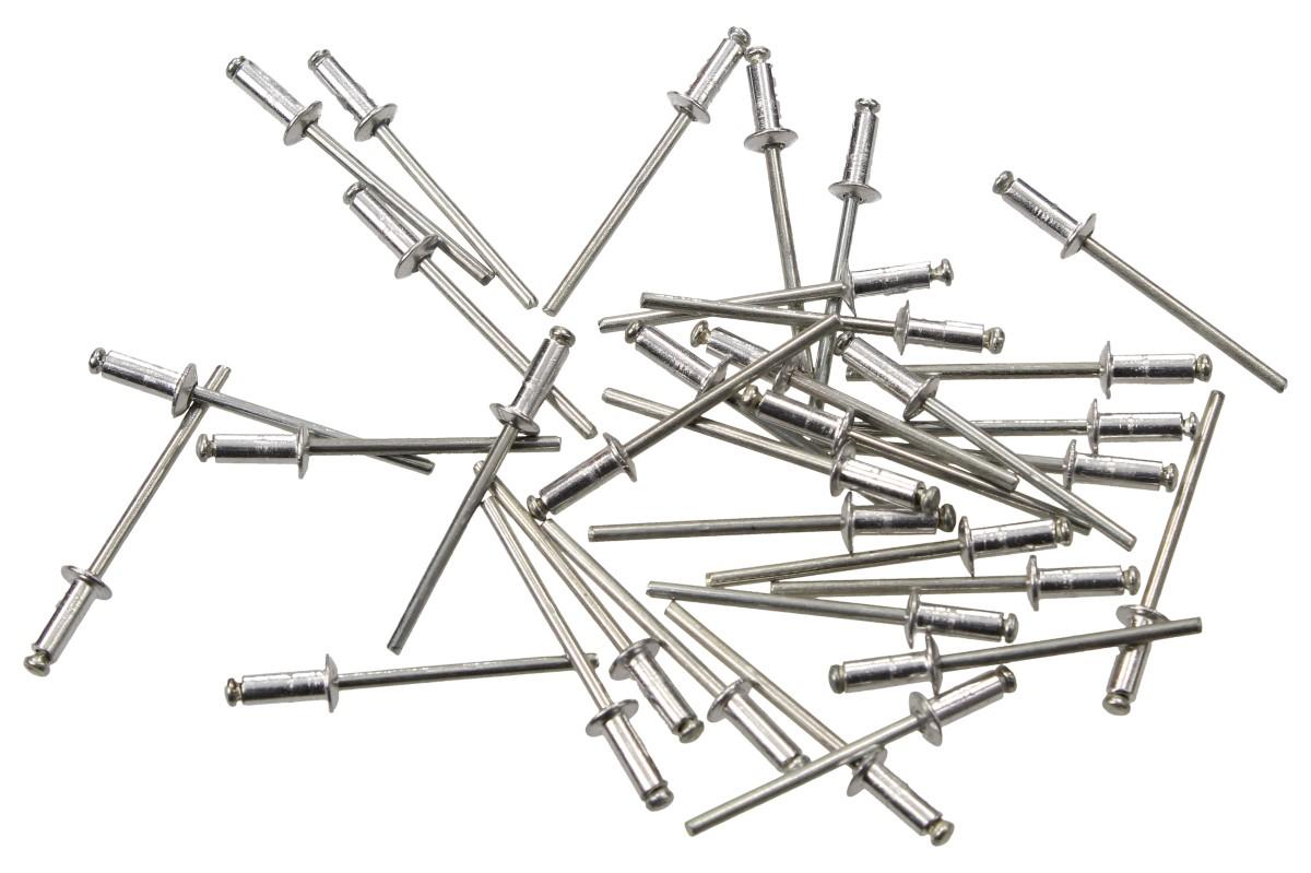 Sada trhacích nýtů 35 ks, slouží ke spojování nerezových vložek při vložkování. Ocelové trhací nýty poskytují vyšší odolnost a pevnost než hliníkové. Plochá hlava nýtu je nejběžněji užívaný tvar, má dostatečnou styčnou plochu pro svírání běžných materiálu, která nevyžadují jiná specifika. Aplikuje se pomocí nýtovacích kleští.
