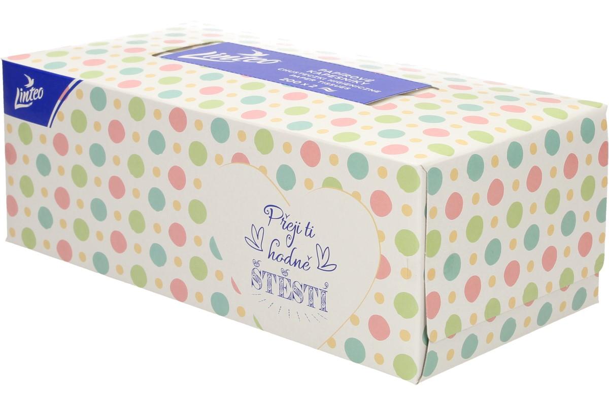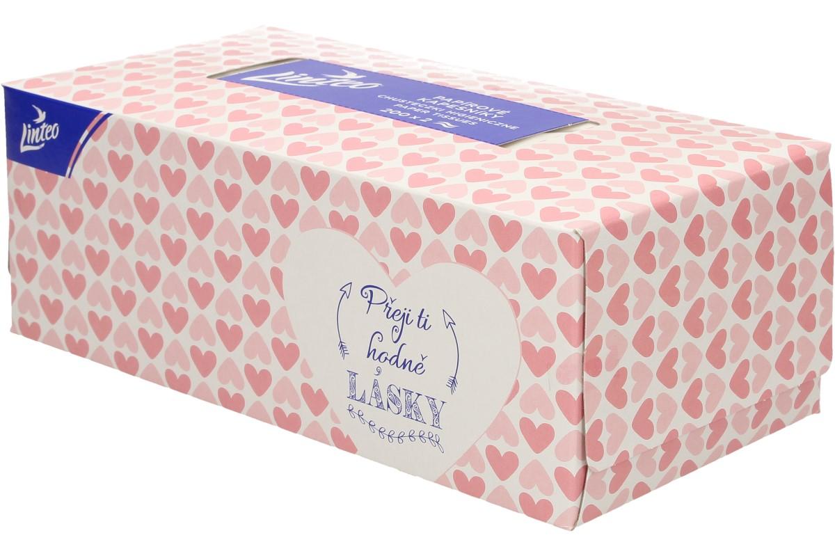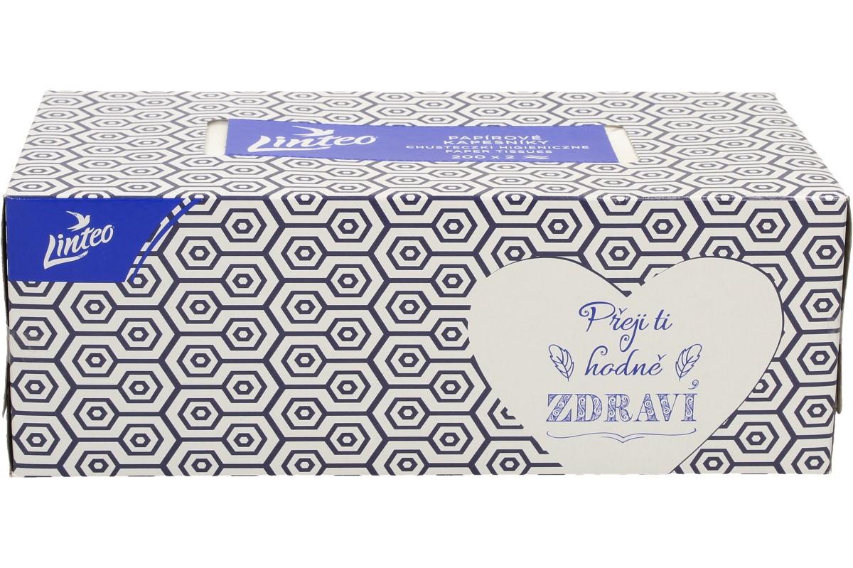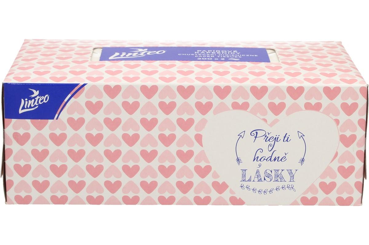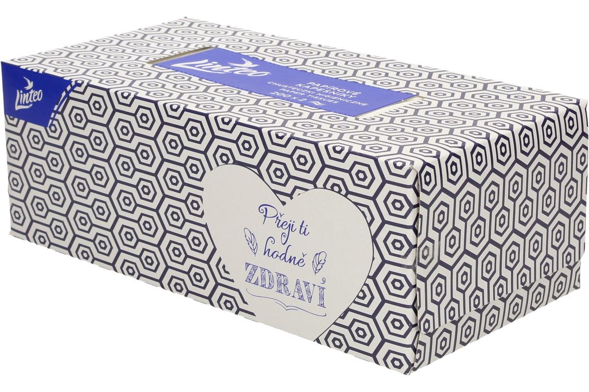 Jemné bílé dvouvrstvé papírové kapesníky Linteo vám zaručí vysokou jemnost, měkkost a pevnost. Tyto papírové kapesníčky jsou vyrobeny ze 100% celulózy. V krabičce, která je zdobena různými motivy, je 200ks. Po dobrání více jak poloviny kapesníků stačí promáčknout dno krabičky a zbylé kapesníky vytlačit nahoru.