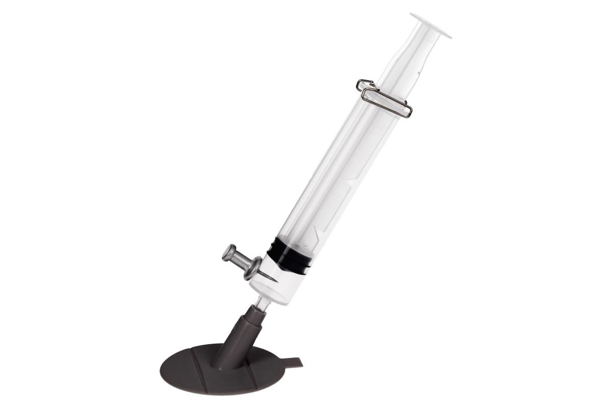 - Balení obsahuje: 1x podstavec,1x injekční stříkačka, 1x špendlík, 1x tuba s pryskyřicí, 1x lepicí těsnění, 1x vytvrzovací fólie, 1x žiletku s bezpečným úchytem, 1x návod v češtině
