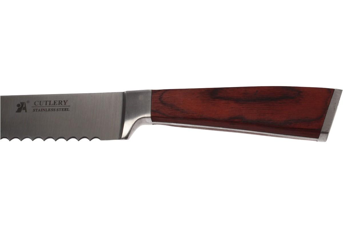 Nůž na pečivo Cutlery 33 cm je ideální na čerstvé, křupavé pečivo i na krájení dortů. Tvarováno a broušeno pro maximální účinek při použití. Nůž je opatřen dlouhou, silnou vroubkovanou čepelí, která zaručuje hladký řez bez trhání. Díky svým dlouhým hrotům vytváří úhledné plátky. Rukojeť je tvarovaná tak, aby se lépe uchytila a bylo bezpečnější držení.