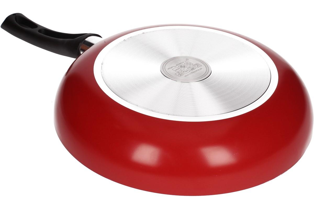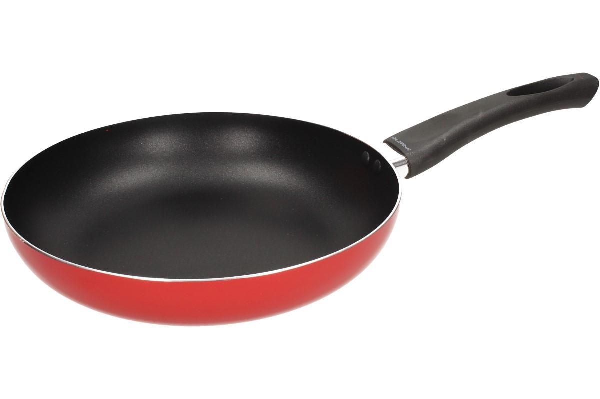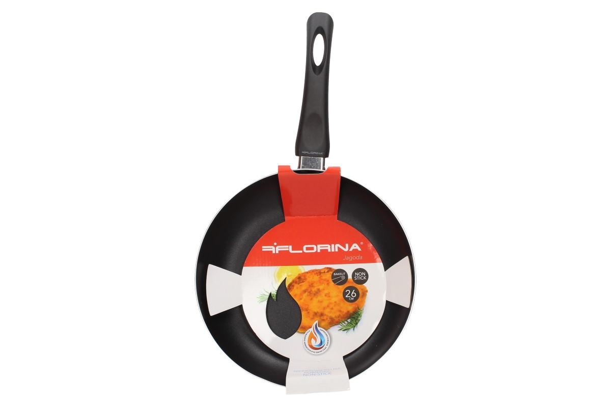 Pánev Jagoda 26 cm je nepostradatelná a praktická hliníková pánvička, na které je radost připravovat pokrmy. Hliníkové stěny se rovnoměrně nahřívají a nic se nepřipaluje díky nepřilnavému povrchu. Stabilní a ergonomická rukojeť se nenahřívá a snadno se tak s pánvičkou manipuluje. Pro čištění nepoužívat ostré nebo kovové předměty, doporučuje se používat dřevěné nebo plastové kuchyňské potřeby. Je vhodná pro všechny typy vařičů.