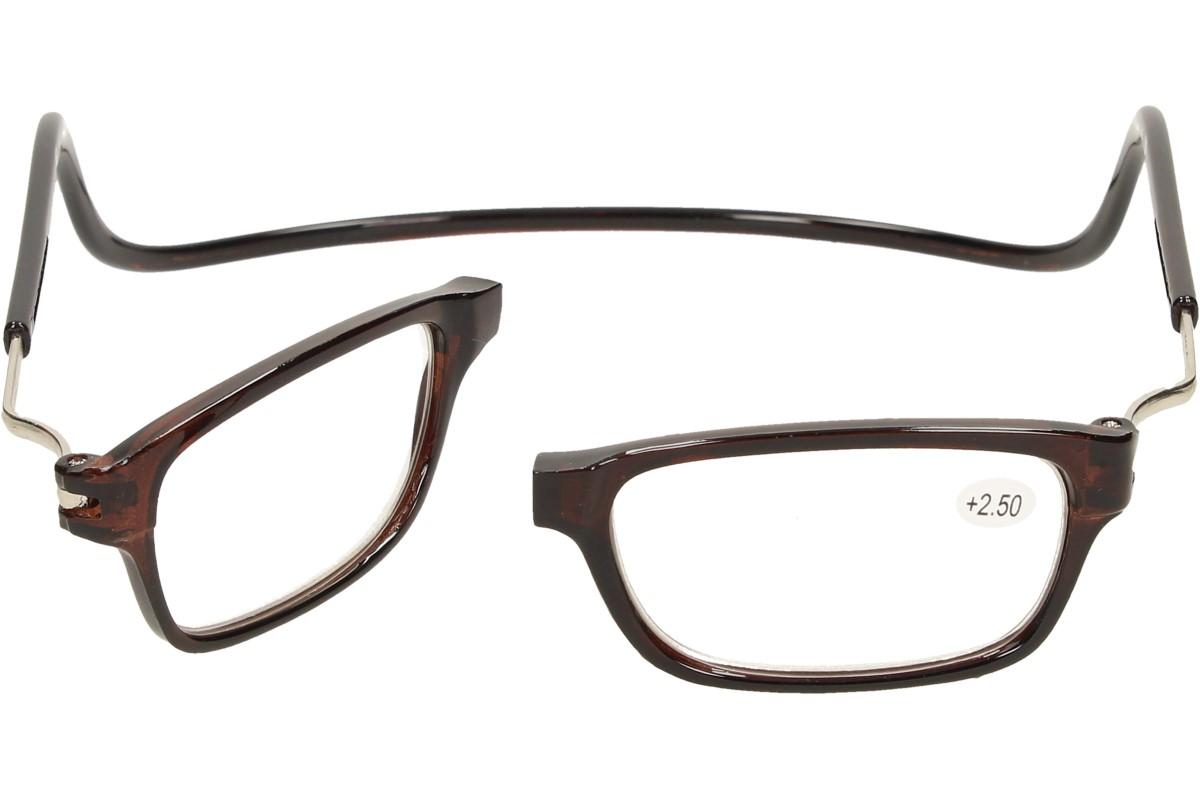 Dioptrické brýle s magnetem hnědé +2,50 jsou vyrobeny z kvalitního plastu a velmi precizně zpracovány, tudíž jsou méně náchylné na vylomení či zlomení. Brýle mají magnetický spoj na nose a závěsný systém díky kterému můžete brýle nosit na krku. Magnet zajišťuje perfektní stabilitu brýlí na nose a posuvné koncovky Vám umožní nastavit si velikost brýlí dle Vaší potřeby. Tyto brýle jsou vhodné např.: do garáží, dílen, zahrad, na nákup, prostě tam, kde si nechcete ničit svoje drahé brýle od optika.