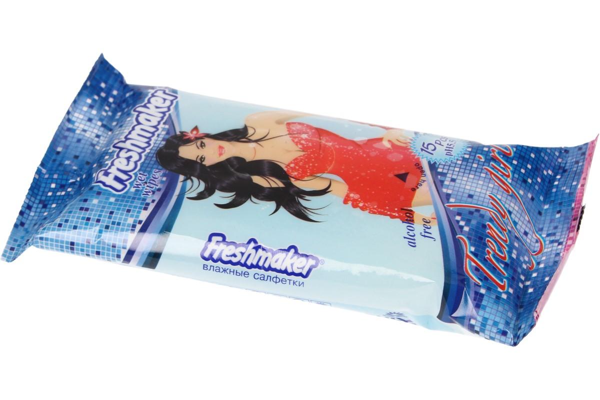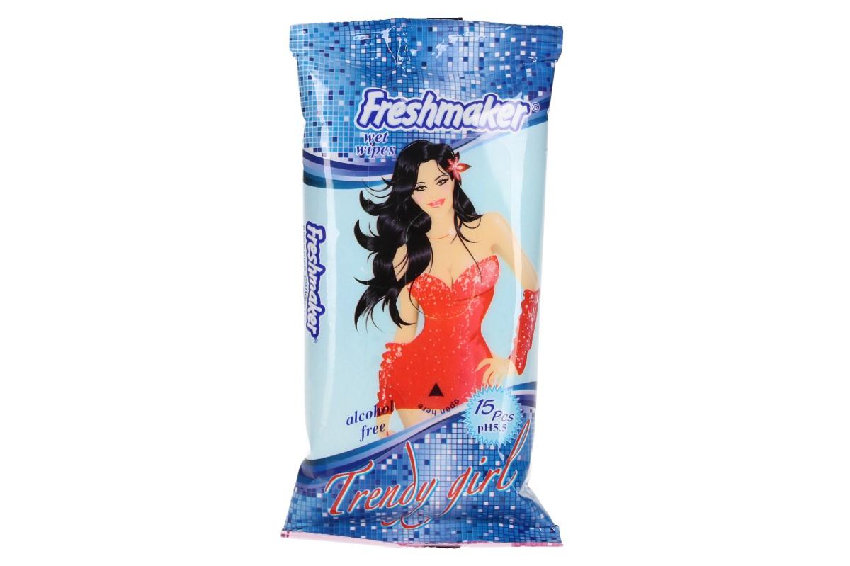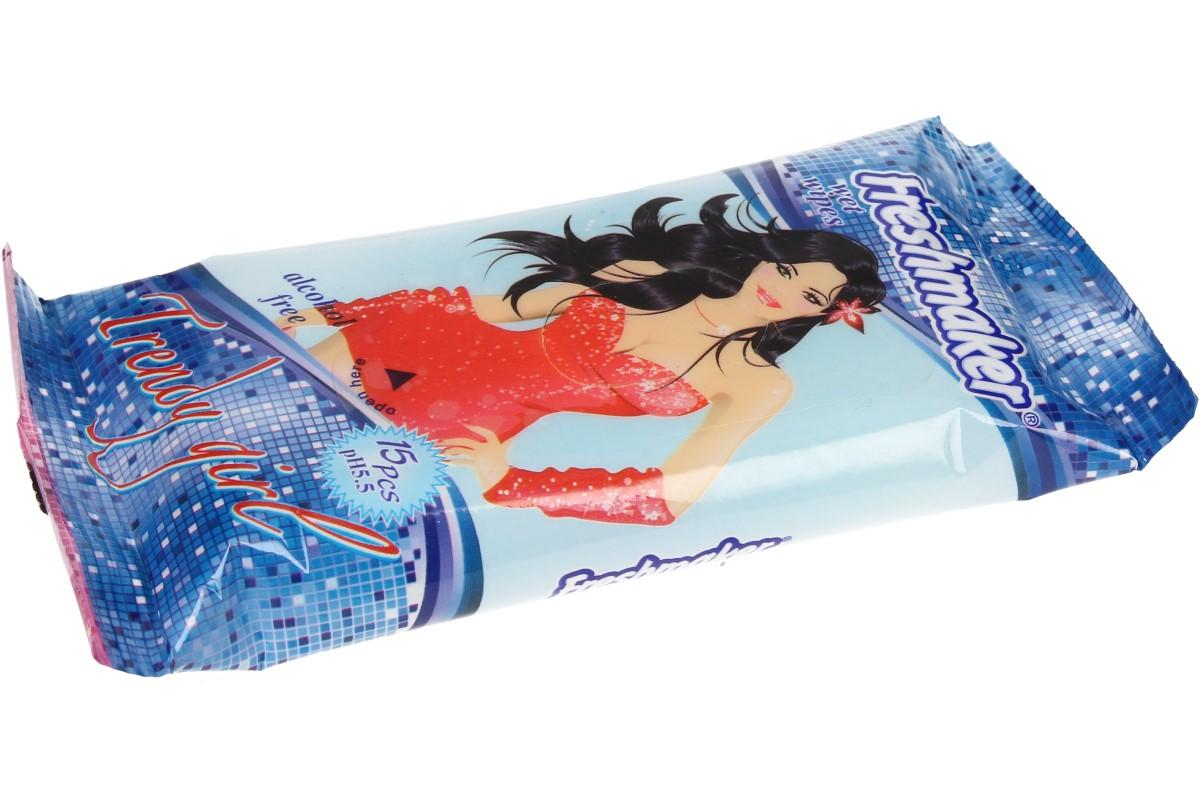 Freshmaker vlhčené ubrousky 15ks Trendy Girl, pružné vlhké ubrousky, které neobsahují alkohol, jsou hygienické, čistí, hydratují a vyživují pokožku. Freshmaker vlhčené ubrousky jsou extra pevné, sametové, měkké s příjemnou vůní květin. Díky malým rozměrům balení, můžete mít ubrousky vždy po ruce. Vhodné k použití na tvář i celé tělo.
