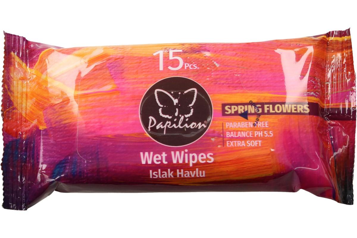 Papilion vlhčené ubrousky 15ks Spring Flowers, pružné vlhké ubrousky, které neobsahují alkohol, jsou hygienické, čistí, hydratují a vyživují pokožku. Papilion vlhčené ubrousky jsou extra pevné, sametové, měkké s příjemnou vůní květin. Díky malým rozměrům balení, můžete mít ubrousky vždy po ruce. Vhodné k použití na tvář i celé tělo.
